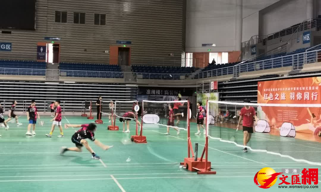 (香港文匯網記者 李紫妍、帥誠)日前,60餘名充滿活力的粵港青少年齊聚南沙體育館,「紅色之旅 羽你同行」粵港青少年紅色研學暨羽毛球交流活動正在這裏舉行,熱浪蒸騰的場館裏,一聲聲有力的揮拍、抽球、腳步急停聲此起彼伏,戰況激烈。在此之前,兩地青少年還同游廣州海防教育基地,深入了解近代歷史,文旅與體育相結合,開啟粵港青少年交流的新模式。