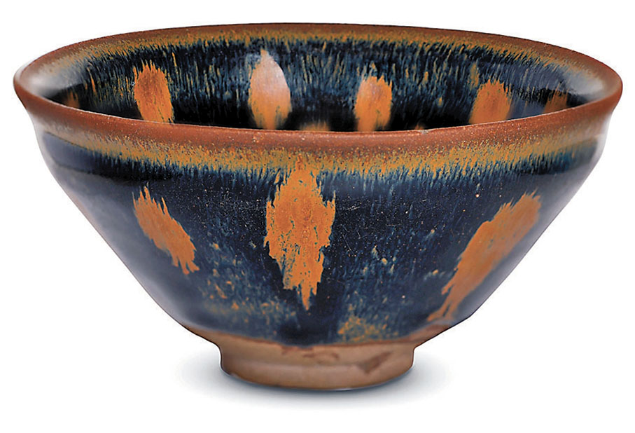 建窯窯址位於福建省南平市建陽區水吉鎮,歷史最早可追溯至唐代,至宋元時期達到鼎盛,其所燒製的茶盞被稱為建盞。與青瓷、青花、粉彩等常見的瓷器種類不同,建窯出產的黑釉瓷器獨具特色,以最濃墨重彩的黑色釉為底色,釉面呈現出一種金屬般的質感。