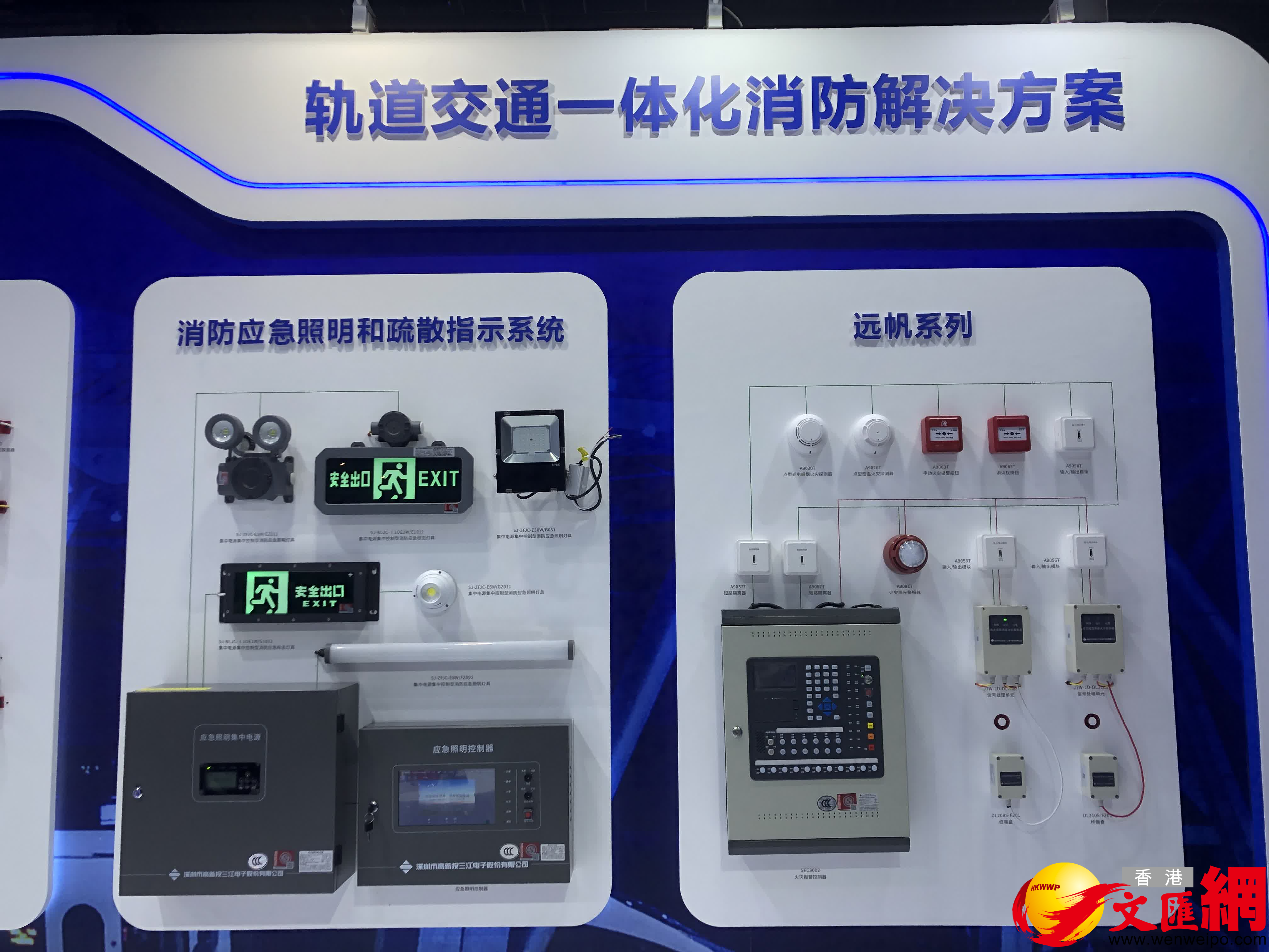 深圳市高新投三江電子股份有限公司則帶來軌道交通一體化消防解決方案,包括消防應急照明和疏散指示系統等。據悉,該公司研發製造了中國第一代離子感煙探測器、首個超大容量火災自動報警系統。該公司產品及方案在廣州火車站、廣深港高鐵福田站等重大工程項目中發揮重要的安全保障作用。