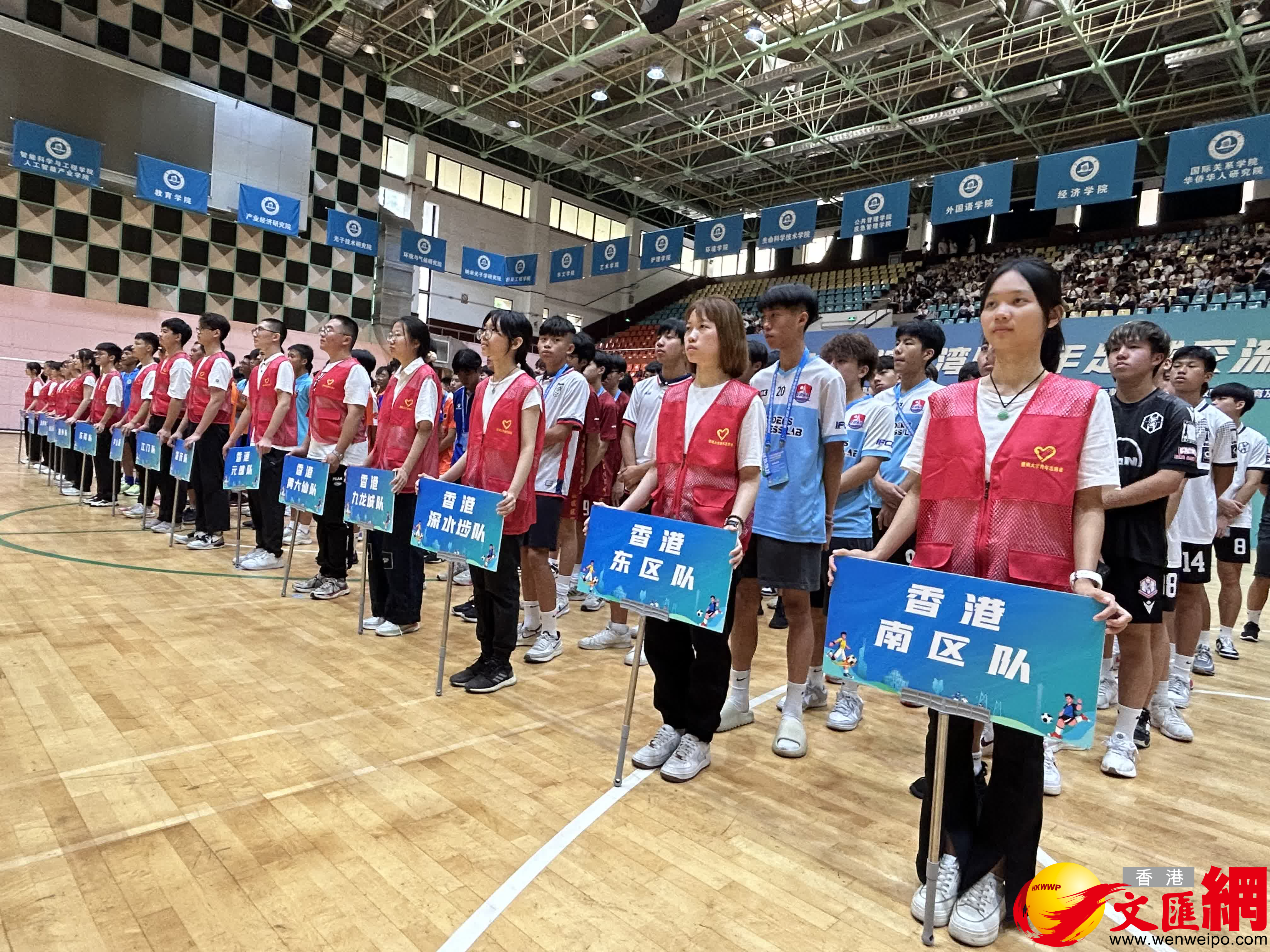 (香港文匯網記者 敖敏輝)25日,由粵港澳三地共同主辦的粵港澳大灣區青年足球交流賽在暨南大學開幕,交流活動持續3天,來自粵港澳三地的16支球隊,將在廣州進行五人制足球比賽,並開展參觀活動。其中,由香港東區體育會、深水埗體育會等組成6支香港球隊參與。