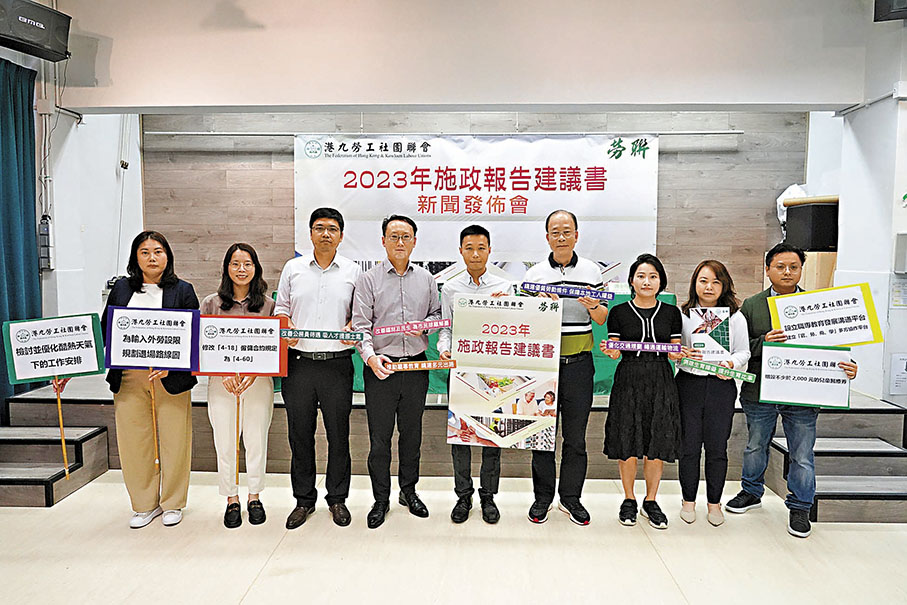 香港文匯報訊(記者 黃書蘭)勞聯昨日在記者會上介紹他們日前向特區行政長官李家超提交涵蓋工人權益、生育、福利、交通、教育、吸引人才等範疇共31項具體政策的施政報告建議書(見表)。勞聯主席、立法會議員林振昇表示,香港出生率近年持續下跌,建議特區政府增設法定有薪育兒假制度;考慮增加侍產假至不少於7天;為新生嬰兒提供每季3,000元津貼至3歲;擴展「在校課後託管服務試行計劃」等,更積極消除香港市民生育障礙。