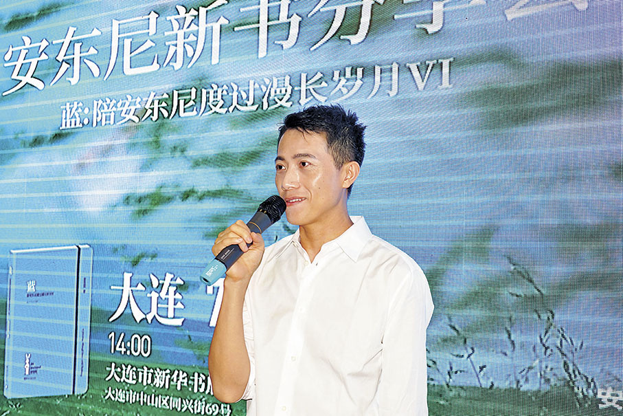 「人生很像俄羅斯方塊,不要總糾結於把每一個空都填滿。有一個東西放錯了,不用糾結,只要不亂了陣腳,終有一日那些沒有被填滿的縫隙都會過去的。」在「治癒系」青年作家安東尼的筆下,複雜世界永遠呈現着美好的部分,平淡生活中總能捕捉到細膩的感動。近日,安東尼攜散文集新作《藍:陪安東尼度過漫長歲月Ⅵ》做客大連新華書店,與讀者互動交流。作為安東尼「陪安」(又稱「彩虹」)系列《紅》《橙》《黃》《綠》《青》之後的全新力作,《藍》延續了這一系列的散文式格調和語言風格。◆文、攝:香港文匯報記者 宋偉