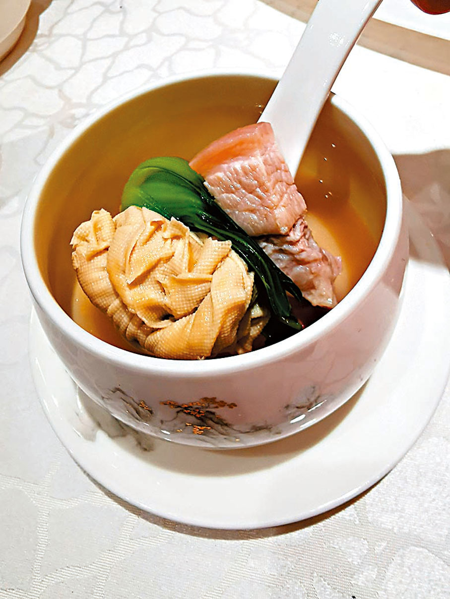 兩道正宗上海菜「砂鍋醃篤鮮」清炒河蝦仁是黎師傅的拿手本菜,黎師傅說,清炒河蝦仁看似簡單,實不簡單;需用上貨源不多的河蝦,炒到晶瑩剔透才算夠功力,他都要練幾年,是正宗上海河鮮菜,不用加調味,河蝦本身已帶鹹,吃起來分外鮮。而「砂鍋醃篤鮮」以金華火腿、豬肉等小火燉,令湯底變成奶白色,完全不需用味精,喝出自然上海味。