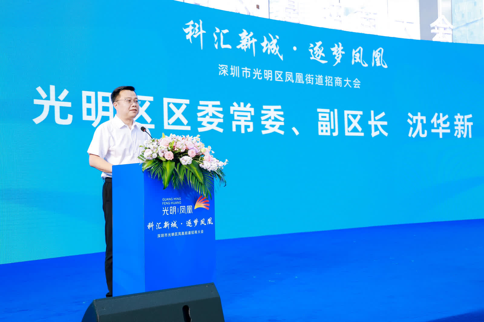 光明區委常委、副區長沈華新在致辭中表示,光明區既是深圳市全力打造的「世界一流科學城和深圳北部中心」,也是國家批覆成立的「大灣區綜合性國家科學中心先行啟動區」。行政區成立5年來,經濟社會發展日新月異,正成為深圳增長潛力最足、發展勢頭最猛的板塊之一。當前深圳正在全力加快建設光明科學城,國務院剛剛發布的《河套深港科技創新合作區深圳園區發展規劃》支持河套聯動光明科學城,在粵港澳大灣區國際科技創新中心建設中發揮更大的作用,光明科學城發展潛力巨大。鳳凰街道位於光明科學城產業轉化區,是重要的成果轉化平台和產業創新平台。光明區年產值超百億企業12家中有5家在鳳凰街道。此次「科匯新城·逐夢鳳凰」招商大會,是光明區第一次由街道牽頭主辦的招商大會,也是今年又一重要且意義非凡的招商引資活動,熱忱歡迎商家和企業前來考察洽談、投資興業。