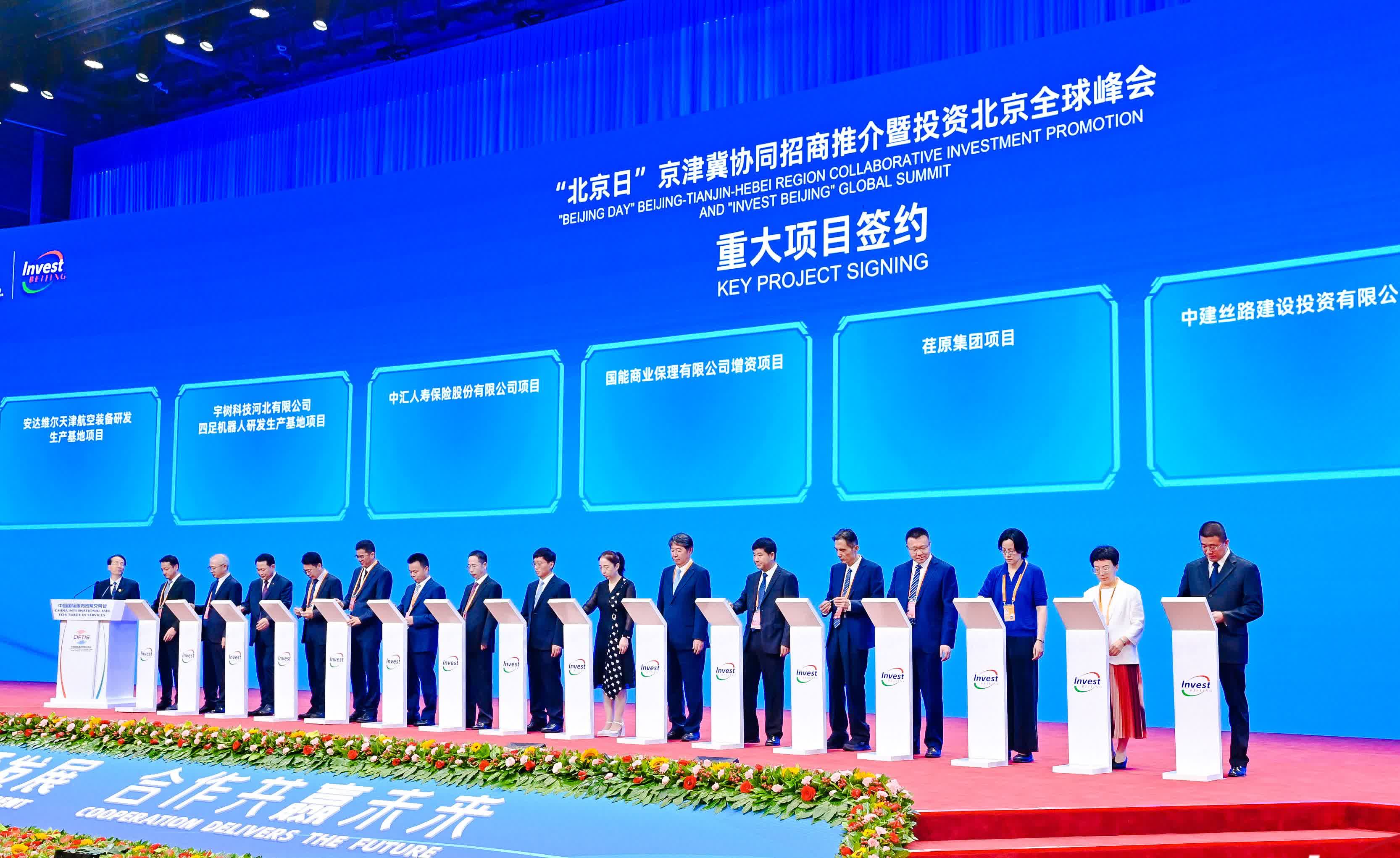 (香港文匯網記者 馬曉芳 北京報道)2023年中國國際服務貿易交易會(以下簡稱「服貿會」)2日開幕。記者從當日舉辦的「服貿會『北京日』京津冀協同招商推介暨投資北京全球峰會」獲悉,京津冀三地聯合面向全球發布277個招商引資項目,招商總額894.5億元(人民幣,下同);51個重大項目簽約,簽約金額達1045.47億元。同時,為更好服務外資企業和外籍人士,北京市政府國際版門戶網站英文版微信公眾號「BeijingService」正式上線。