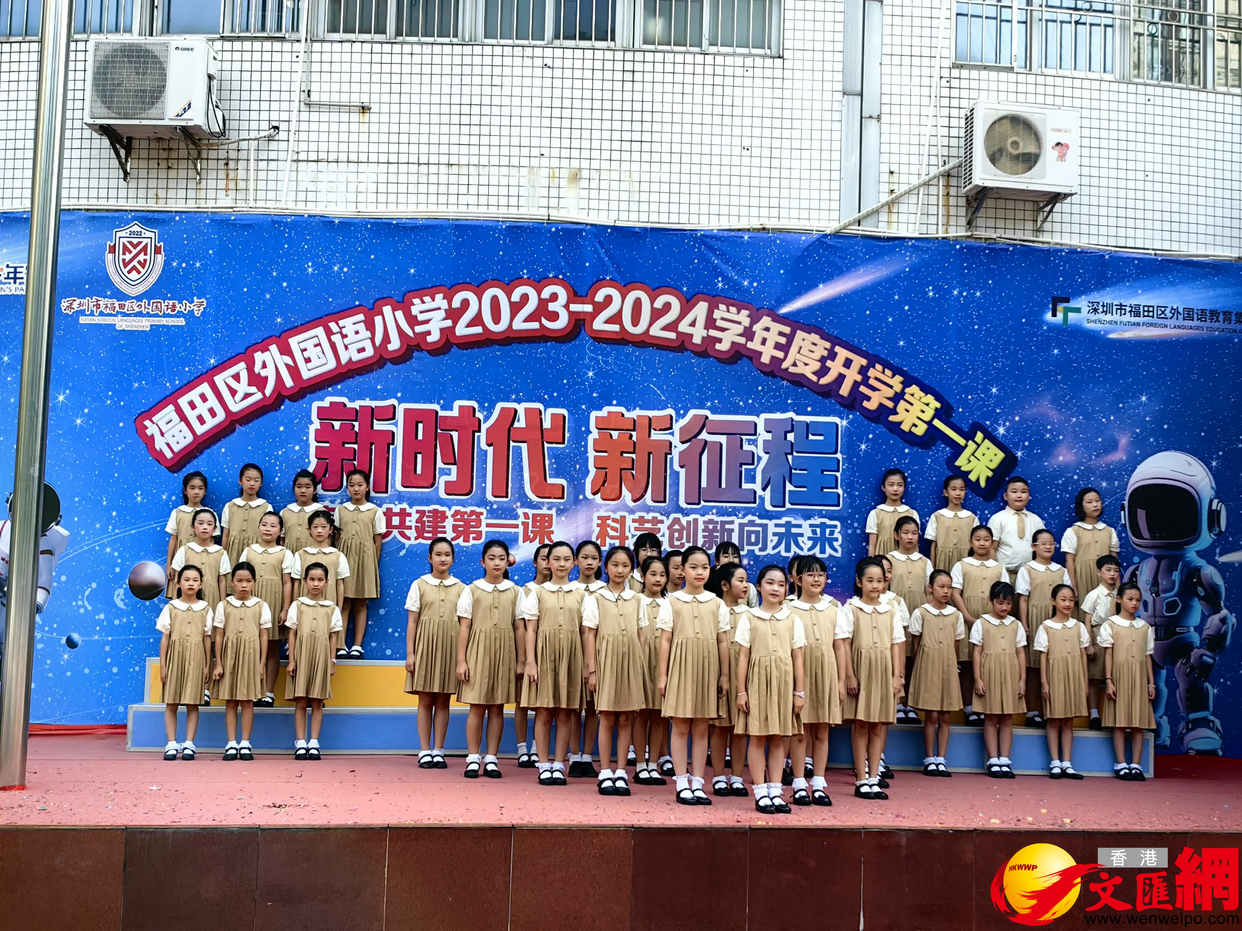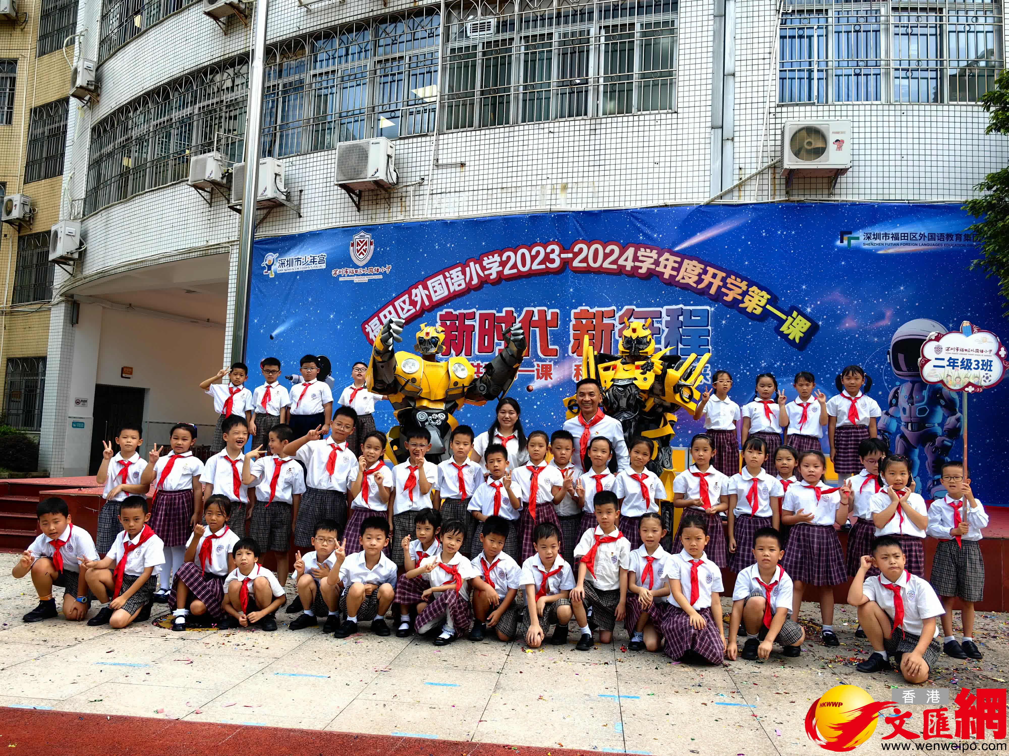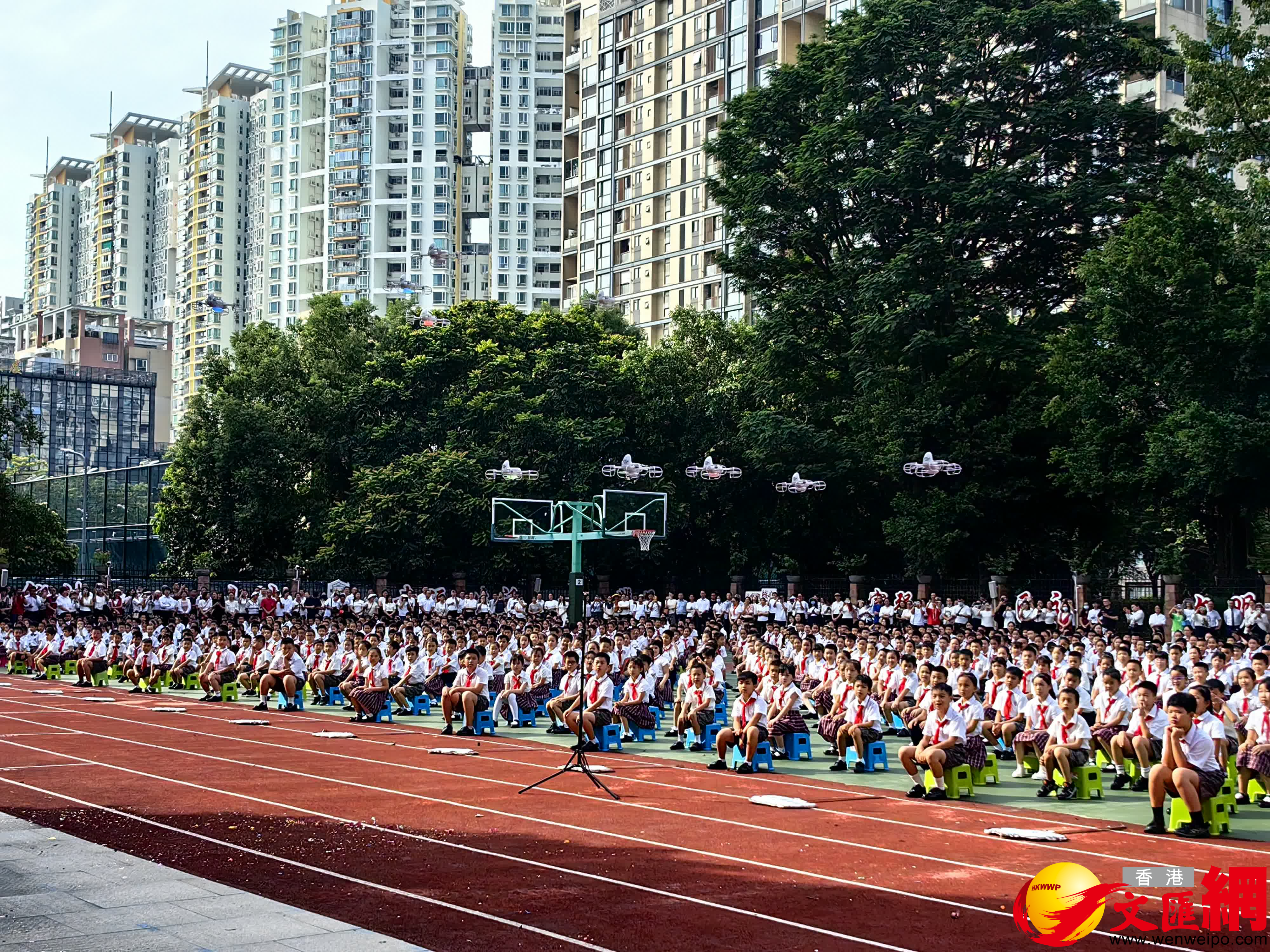 (香港文匯網記者 郭若溪)「大黃蜂」助興、無人機表演、科學秀炫酷……9月4日,深圳全市中小學、幼兒園正式開學,福田區外國語小學舉行了以「新時代 新征程 宮校共建開學第一課」為主題的開學儀式,一個個科技感滿滿的表演項目,讓同學們感受到科技的無窮魅力,過足了科技癮。