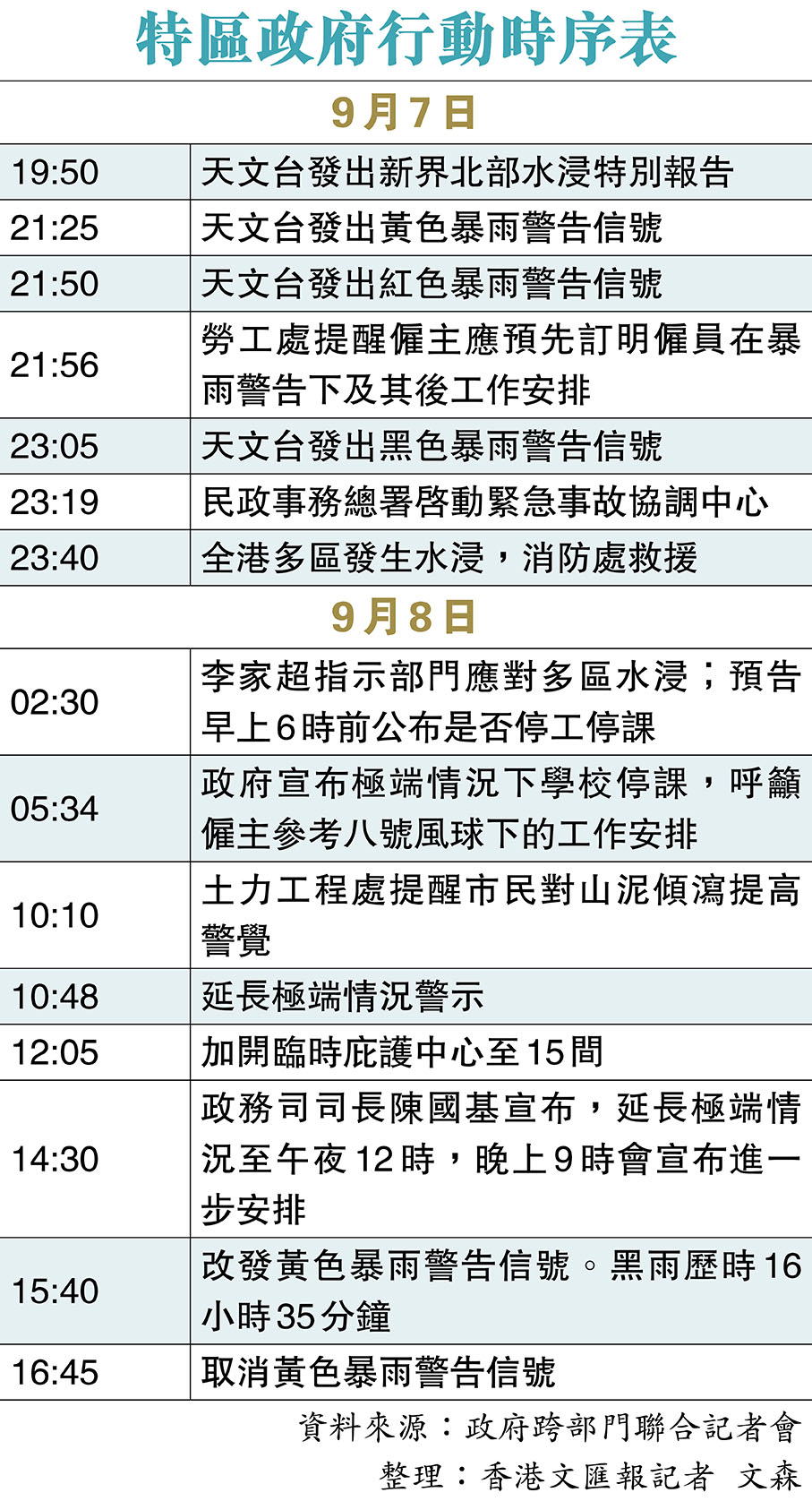 (香港文匯報記者 蕭景源)面對這場百餘年來最長、最「黑」的雨災,香港特區政府紀律部隊人員一如既往站在抗洪救災最前線,拯救市民生命財產。截至昨日中午,警方和消防合共接獲逾千宗與水浸相關求助,營救和疏散被洪水圍困在村屋、水流或車內的市民,救助超過20名傷者和疏散逾110名市民,包括在荔枝角九華徑村,救出包括5名幼童在內的11名村民,在林村河水救起一名被困翻艇上隨水漂流的市民,以及在大埔游繩救出多名因車輛拋錨被困水中的司機,盡顯紀律部隊以民為本的英勇精神。