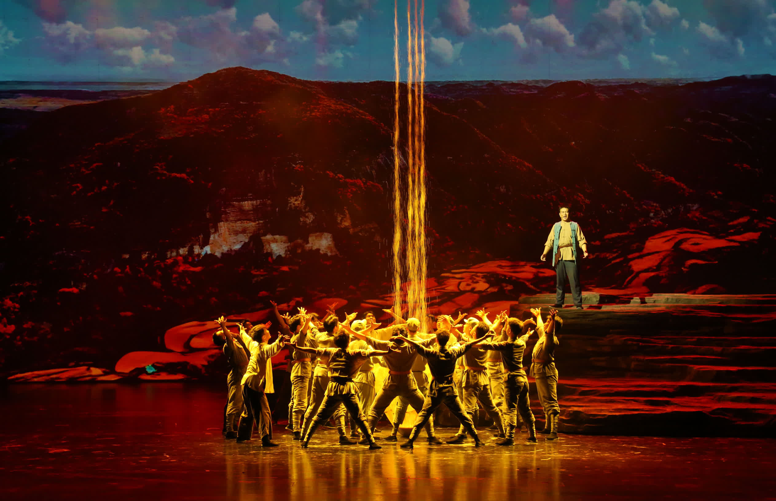 作為本屆藝術節的開幕大劇,大型交響情景組歌《紅色照金》在開幕式之後精彩上演。據介紹,1933年,老一輩革命家在陝西銅川照金創建西北第一個山區革命根據地——陝甘邊革命根據地,照金由此成為西北革命的搖籃,在中國革命史上寫下光輝絢麗的篇章。