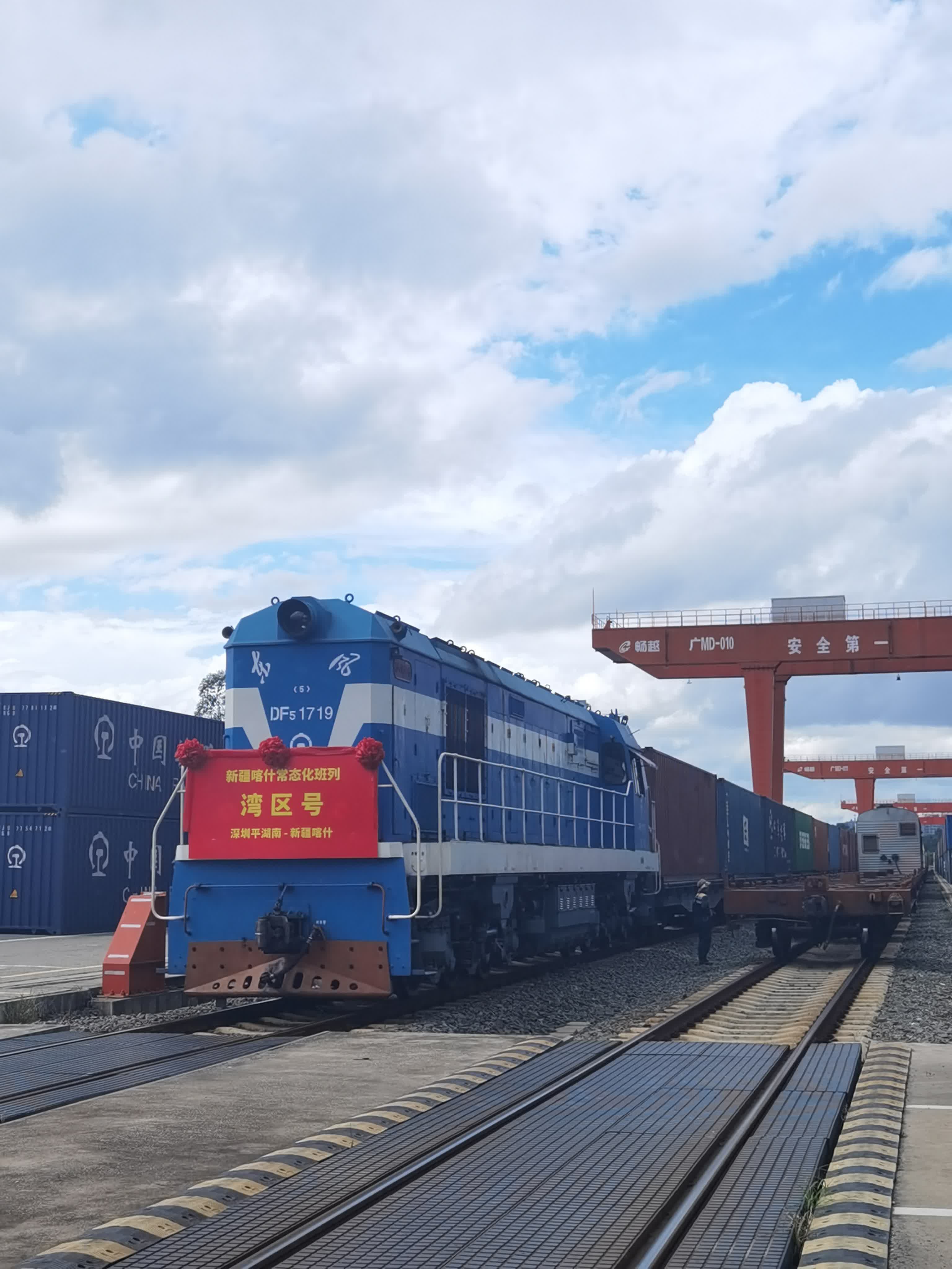 由深圳市交通運輸局組織、中國外運與深國際控股兩家公司合力打造的「灣區號」運營平台公司開通新疆喀什鐵路班列,為深圳企業拓展新疆市場提供新的物流通道。新疆喀什班列於6月啟動試運行,運輸里程達5777公里,試運行期間班列平均用時11天。