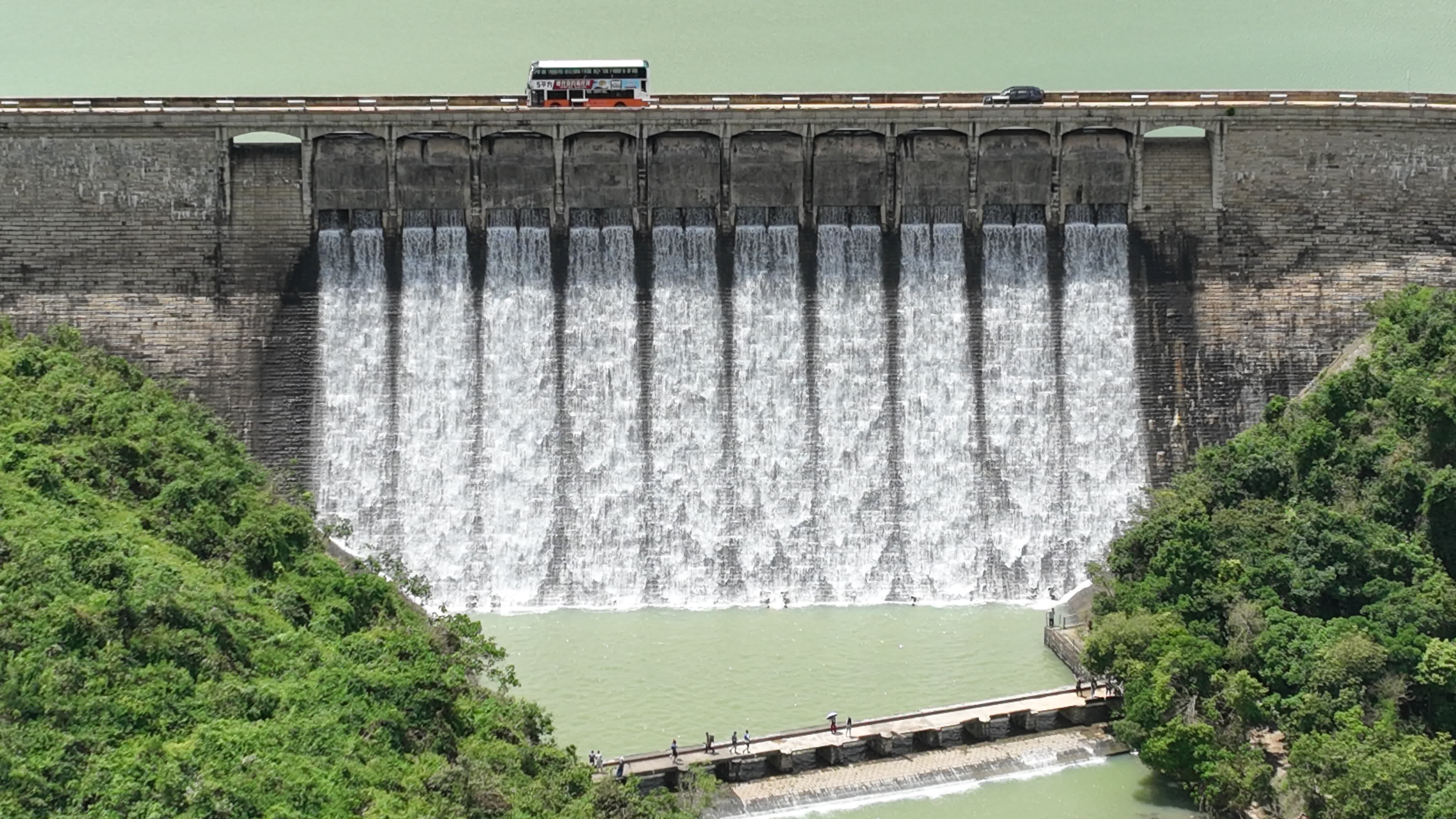 由於水位太高,水壩方面需連續多日放水。適逢周日,行山客劉先生特別帶子女前來觀賞,他興奮地表示,「今次放水好似瀑布咁震撼,難得喺香港可以見到,就帶埋個仔嚟感受下大自然威力,順便沖走過去幾日惡劣天氣留喺心中嘅陰霾嘛!」