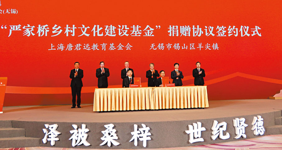 香港無錫籍著名愛國實業家唐翔千先生設立上海唐君遠教育基金會,通過愛國重教,培育英才的眾多舉措支持祖國教育事業,促進社會和諧發展。基金會特別關注故鄉嚴家橋的變化,牽掛着無錫的發展。