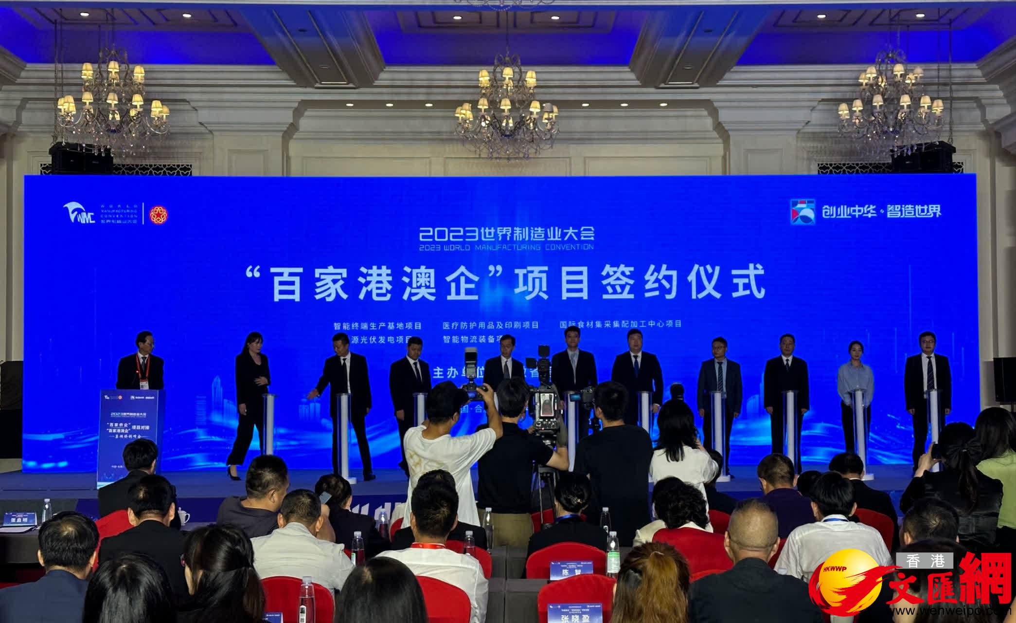 (香港文匯網記者 趙臣)2023世界製造業大會今日(20日)在安徽省合肥市開幕。此間,舉辦「百家港澳企」項目對接專場活動,現場組織了5個港澳企項目集中簽約。在本屆世界製造業大會,共有33個港澳企項目簽約,投資總額達398億元(人民幣,下同),涵蓋新一代信息技術、新材料、新能源和節能環保、新能源汽車和智能網聯汽車、高端裝備製造、生命健康、綠色食品等行業。