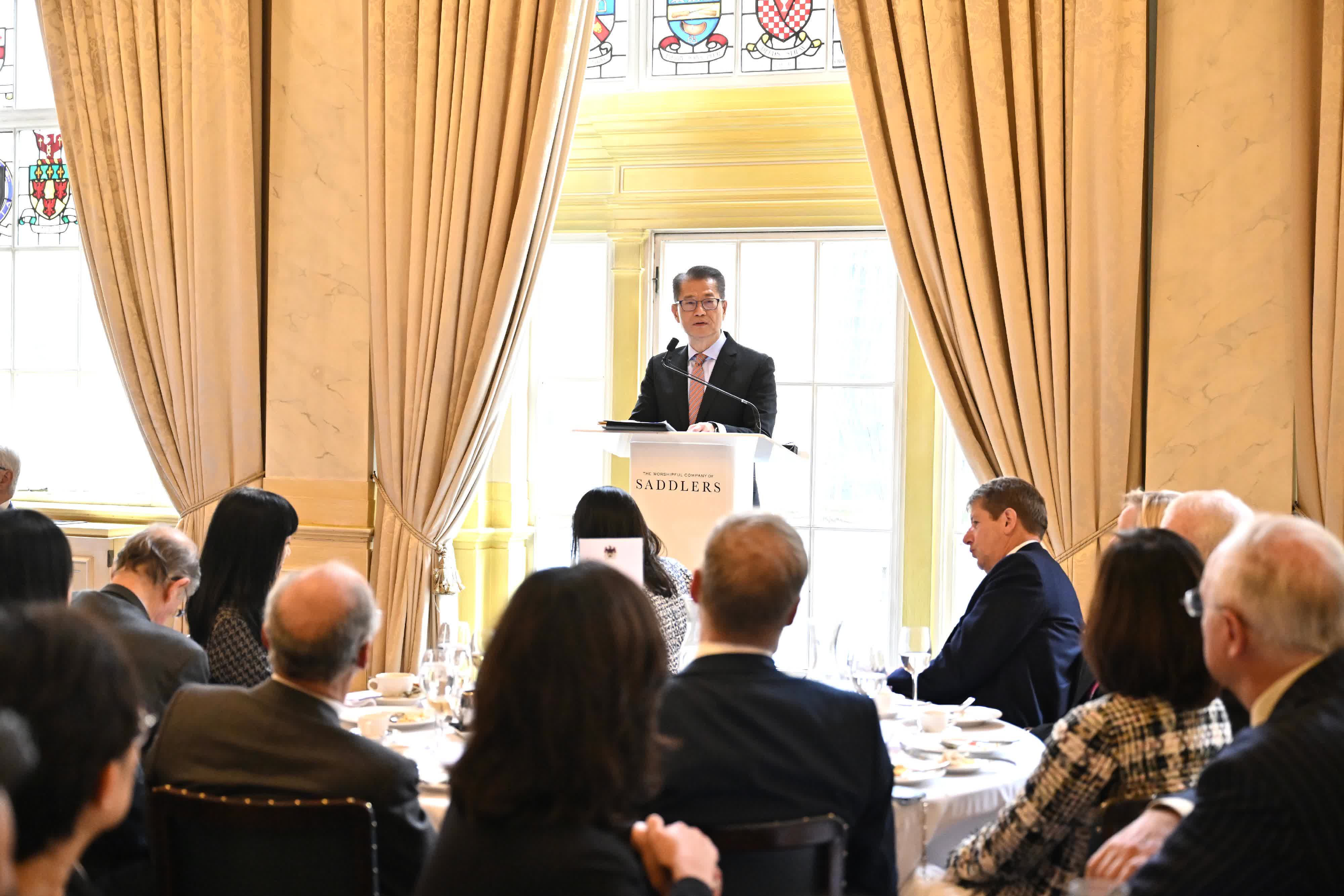晚上,陳茂波出席了由英國中國商會舉行的晚宴。
