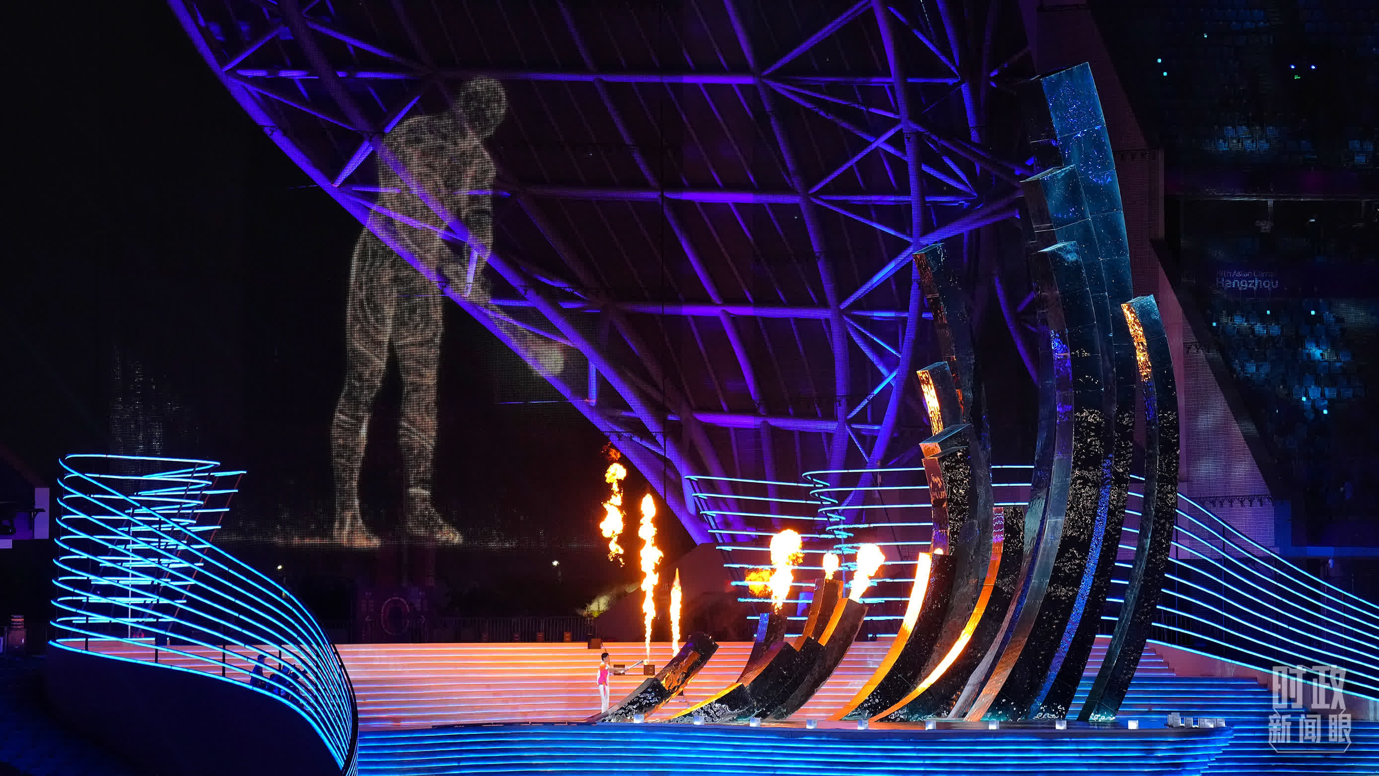 當晚的主火炬點燃儀式,由運動員火炬手與「數字火炬手」一道點燃主火炬塔,這是亞運史上首個數字點火儀式。杭州亞運會開幕式還取消燃放實體煙花,改用「數字」煙花替代。