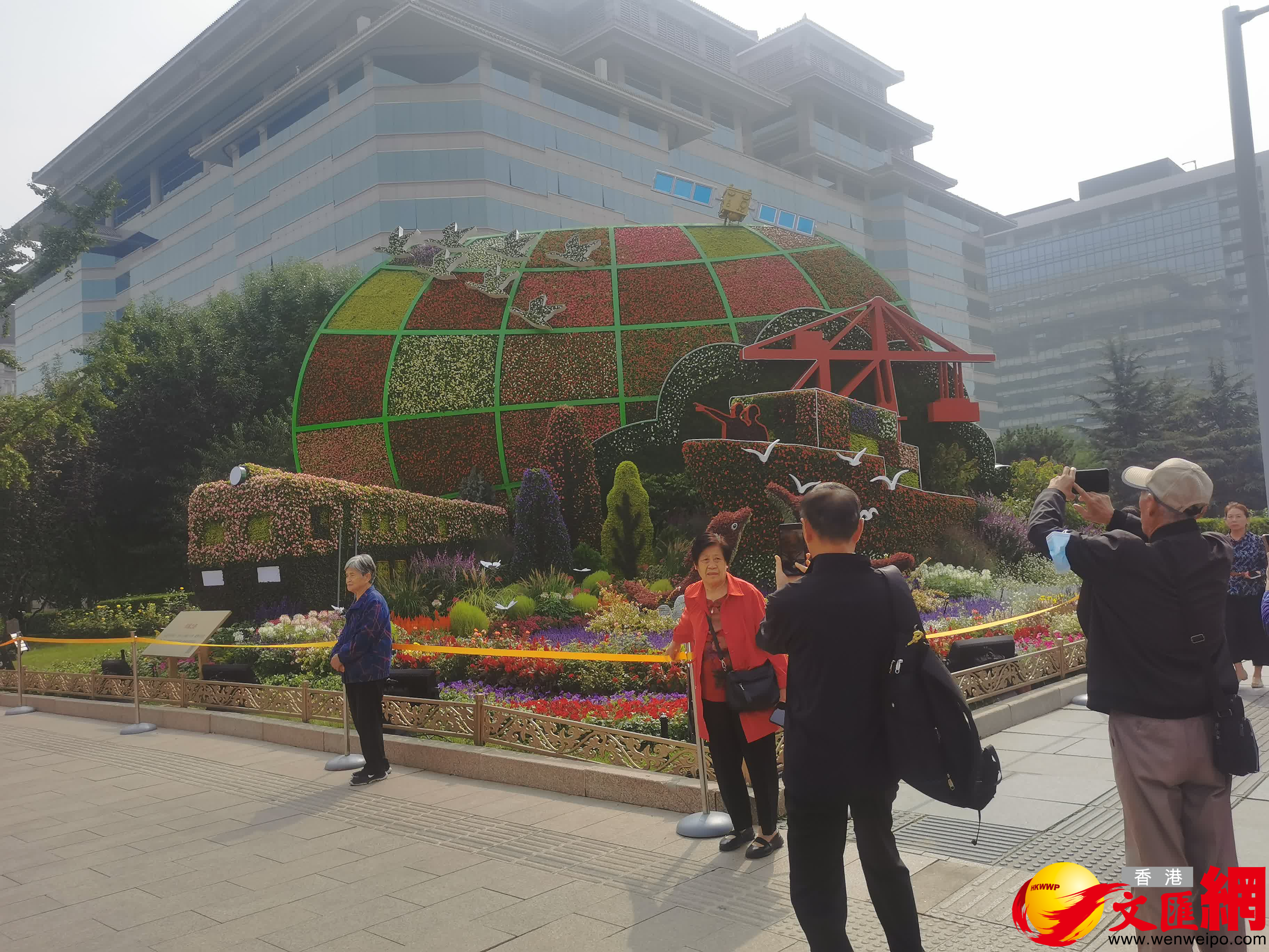 (香港文匯網記者張帥 北京報道)2023年國慶臨近,慶祝國慶的氣氛漸濃。記者9月26日在天安門廣場看到,「祝福祖國」主題花壇已布置完工正式亮相,今年,在選取擁有美好寓意的花卉之外,巨型花籃還首次裝上喜慶豐收的水稻、小麥、小米、黃米、大豆等五穀,體現花團錦簇、五穀豐登。長安街沿線的10處主題花壇也已布置完成,以中歐班列、貨輪以及海豚為主景的「一帶一路」場景,和「嫦娥奔月」的花好月圓場景形象逼真,吸引不少路人打卡。