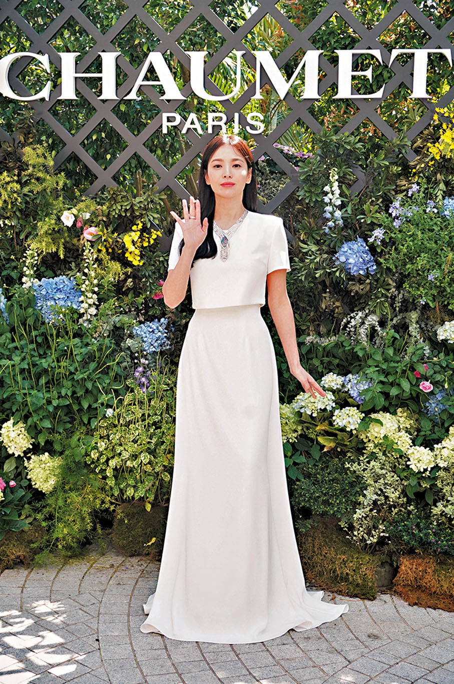 香港文匯報訊(記者 子棠)韓國女星宋慧喬昨日現身珠寶品牌活動,亦是她相隔5年及自2019年與宋仲基離婚後首度來港。現年41歲的宋慧喬被指擁有「夢幻神顏」,活動中她以白色長裙配襯近2千萬港元的珠寶,的確仙氣十足,但連同步出讓傳媒拍照及發言,全程僅有2分鐘時間,名副其實閃耀又閃現登場。