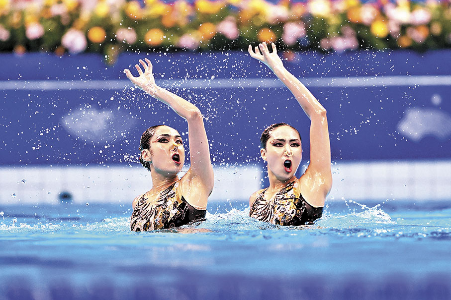 花樣游泳雙人項目決賽分為技術自選和自由自選兩個項目,在6日的技術自選項目,王柳懿/王芊懿獲得266.5767分,領先第2名日本組合12.8334分。