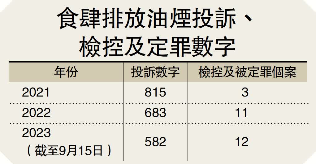 根據環保署數據,由2021年至今年9月15日止,環保署就食肆排放油煙收到逾2000宗投訴,檢控及定罪就只有26宗。