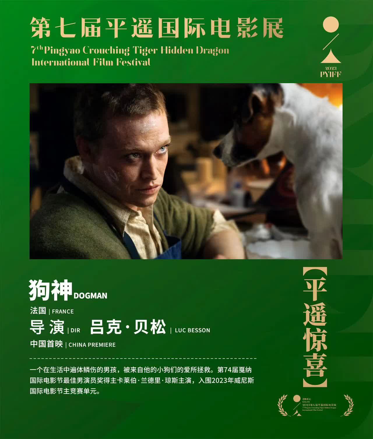 (香港文匯網記者 楊奇霖)由呂克·貝松執導,卡賴伯·蘭德里·瓊斯主演的影片《狗神》(DOGMAN)將作為第七屆平遙國際電影展「平遙驚喜」影片,於10月15日在平遙電影宮站台·露天劇場進行中國首映。屆時,呂克·貝松導演本人也將親臨現場,與平遙電影展觀眾進行交流。