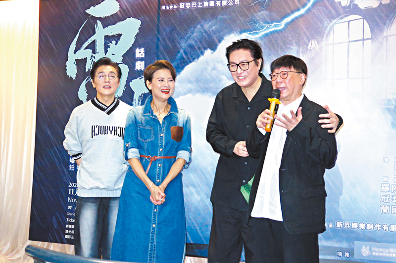 香港文匯報訊(記者 阿祖)經典話劇《雷雨》再度搬上西九文化戲曲中心大劇院,於11月8日至12日共演出5場,主角陳培甡、黎燕珊、南鳳、鄧有銀及陳希寶一同出席記者會。而幕後團隊也來頭不少,除了有佛山粵劇院設計舞台,亦有義務擔任演出指導的羅冠蘭與著名服裝設計師陳華國出力幫忙。至於音樂亦很重要,陳培甡亦邀請音樂監製何秉舜擔任音樂總監。