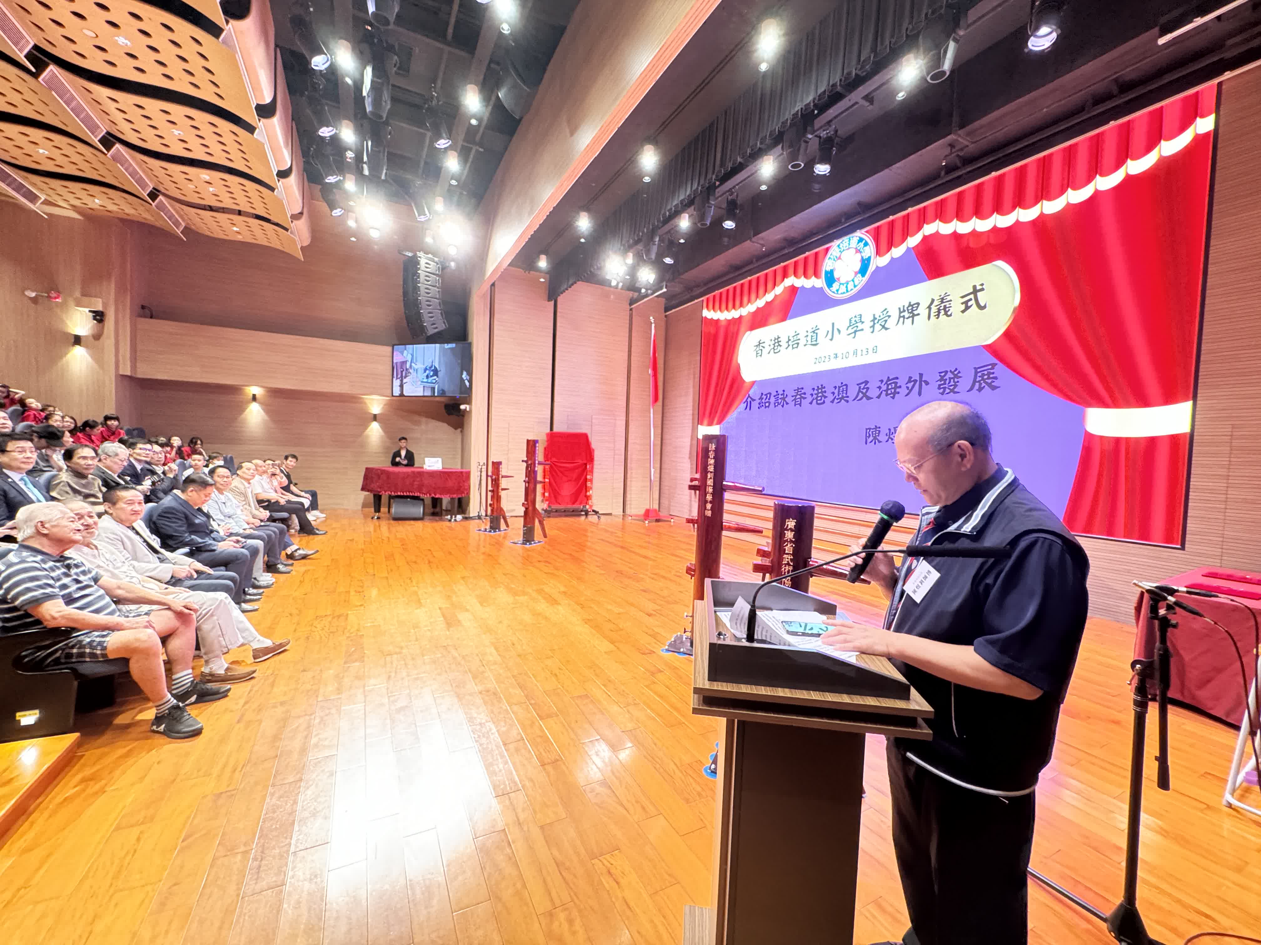 儀式上,佛山市政協委員、團結香港基金顧問、大灣區經貿協會會長蘇祖耀博士感謝廣東省武術協會選擇香港培道小學暨幼稚園成為在香港第一間 「武術進校園示範單位」的學校,同時,這也彰顯了學校重視傳承價值與文化的決心。