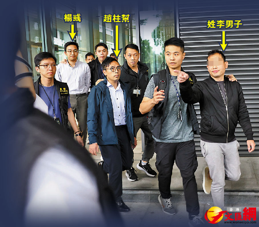 重案組探員根據調查,在前日及昨日在長沙灣區拘捕楊彧、趙柱幫及姓李兄弟,並根據法庭手令搜查各人住所及辦公地點。昨日下午4時許,探員押解楊彧、趙柱幫及其中一名姓李被捕人到觀塘道348號宏利廣場的辦公室搜查。眾人約逗留1小時,探員離開時檢走相關文件及電子通訊工具等證物帶署。