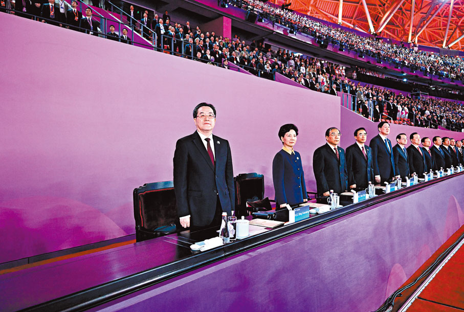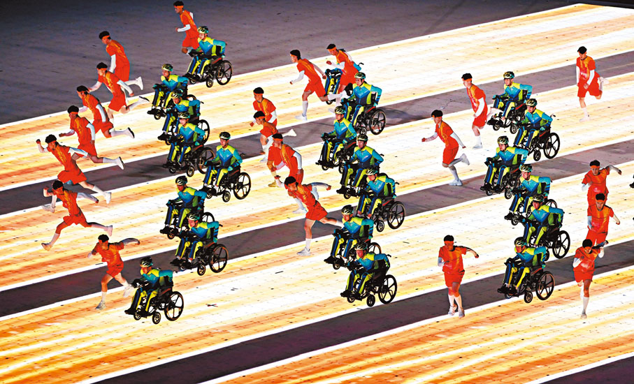 (香港文匯報記者 郭正謙 綜合報道)杭州第四屆亞洲殘疾人運動會昨晚於杭州奧體中心體育場舉行開幕禮,由中國國務院副總理丁薛祥宣布今屆亞殘運會開幕,並由機械手臂點燃主火炬,而中國香港代表團在持旗手朱文佳及王婷莛的帶領下,排在第七支代表團進場。今次開幕式以「心相約,夢閃耀」為主題,通過《心相約》、《勇向前》、《夢閃耀》三個表演段落,鋪陳出杭州對亞洲的再次誠意相邀,以及展現殘疾人自強不息的精神,體現出「兩個亞運,同樣精彩」。