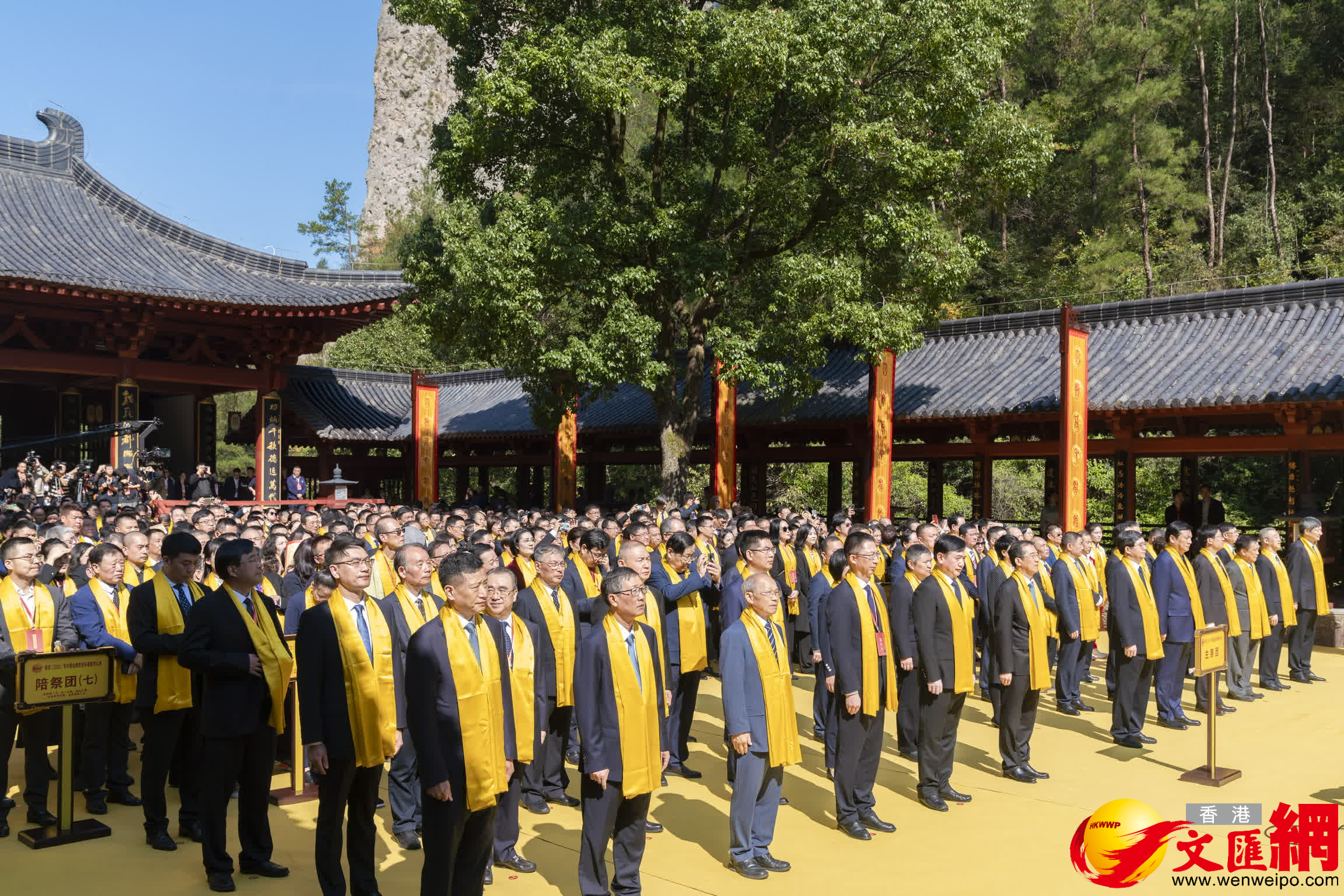 9時10分,參祭嘉賓身披黃色綬帶,在飛天廣場進行祭前序禮後,走過仰止亭、馭龍亭,進入黃帝祠宇,在軒轅殿前的祭祀大院莊嚴列隊,現場氣氛莊嚴、肅穆。