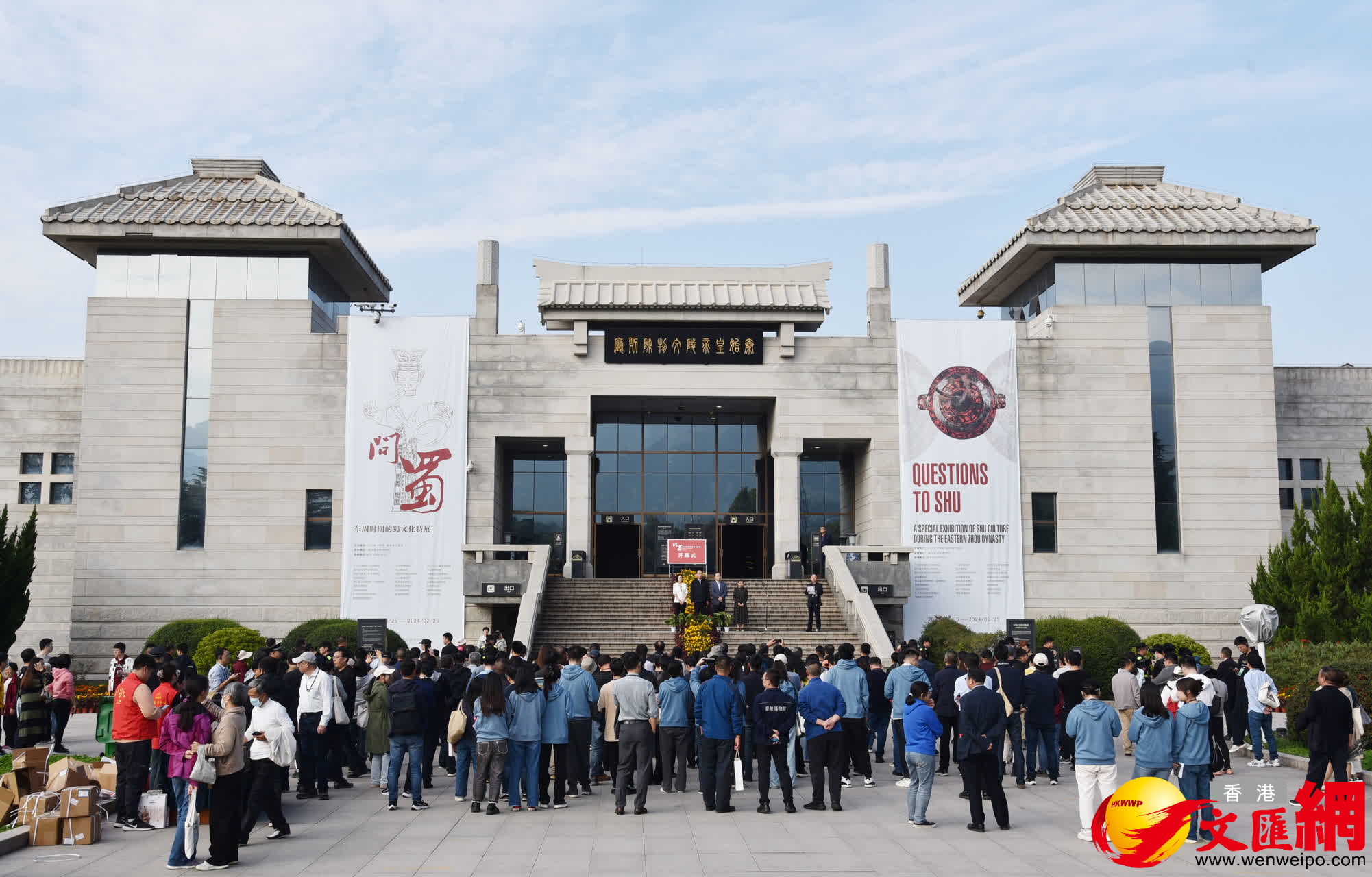 (香港文匯網記者 李陽波)形態誇張的青銅人頭像、神秘的跪坐銅人像、驚艷絕倫的太陽神鳥金飾、造型奇特的豬形漆盒……10月25日,「問蜀一一東周時期的蜀文化特展」在秦始皇帝陵博物院文物陳列廳正式開展。此次展覽匯聚了四川、湖北、陝西25家文博單位的300餘件展品,不僅清晰回答了古蜀文明「你是誰?」「你從哪裏來?」「你去了哪裏?」等問題,同時更用實物展示了特立獨行的古蜀文明一步步匯入中華文明歷史長河的進程。