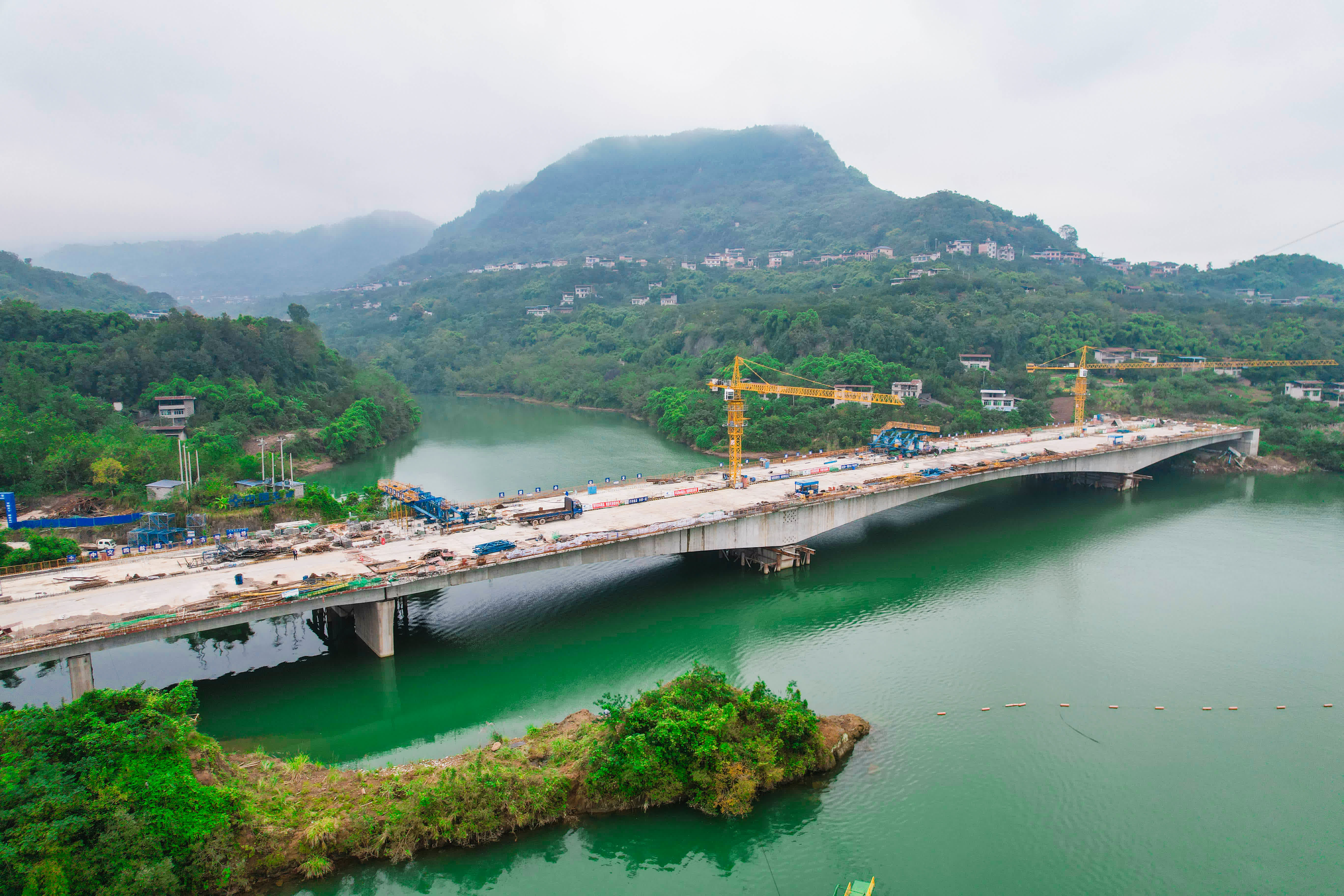 其中,穿古洞大橋全長360米,採用掛籃懸臂澆築法進行施工。大橋施工初期,項目建設團隊開展支架現澆箱梁及掛籃懸臂澆築施工專題研究,根據庫區橋樑施工條件,選擇適應現場施工條件的掛籃形式並對掛籃平台系統、懸吊以及現澆支架結構進行優化,保證蓄水期箱梁施工安全性。「在掛籃施工中,涉及移籃、懸澆等多個危險性較大的施工工序,肉眼看不清現場,傳統的方法難以做到精細化掌握掛籃各桿件結構的實時精準數據。」項目指揮長鄧文傑說。