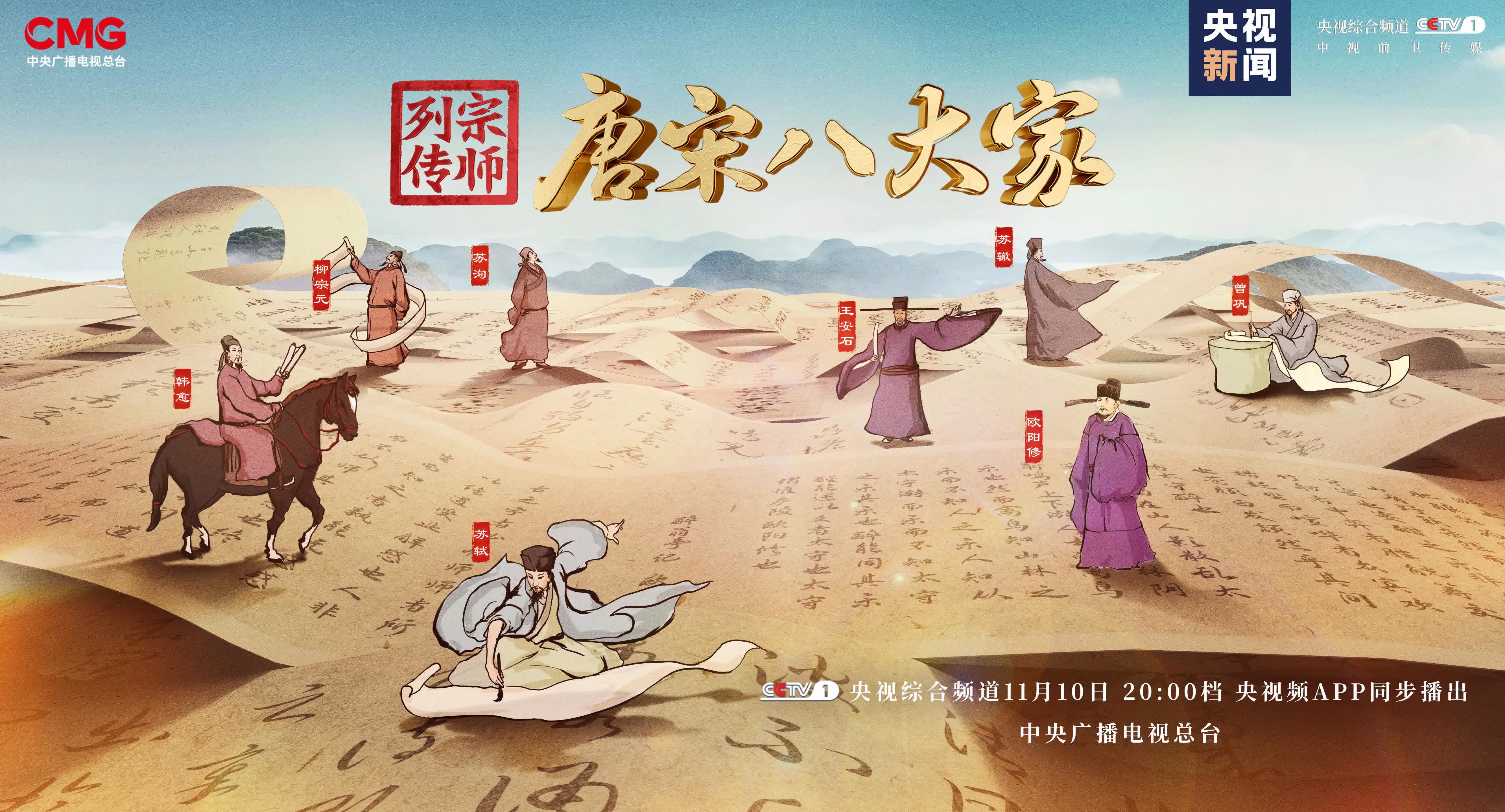 訪一代宗師,尋千年文脈!11月10日20:00檔,鎖定CCTV-1央視綜合頻道,《宗師列傳·唐宋八大家》即將開播。央視頻APP同步播出。