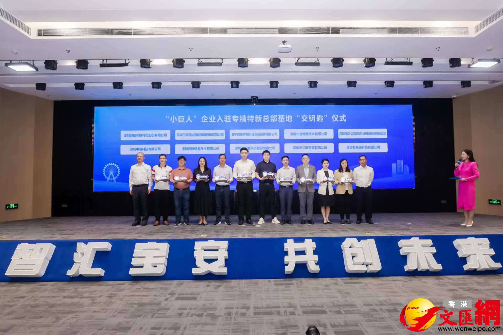 (香港文匯網記者李望賢 深圳報道)深圳首個以專精特新企業為主要產業特色的總部基地正式開園,深圳市深科達智能裝備股份有限公司、碧興物聯科技(深圳)股份有限公司、中科邁航信息技術有限公司等10家專精特新「小巨人」企業舉行儀式接過「鑰匙」進駐。