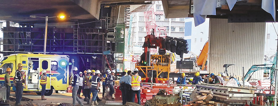繼前日東涌醫管局地盤發生工人遭高處墜下鋼筋擊斃事故後,昨日在油麻地一地盤再發生嚴重工業意外。有工人操控吊臂車從地面運送一批共重約1.5噸鋼筋落15米深地底時,疑綑綁鋼筋的纜索突然折斷,導致鋼筋鬆脫墜下,地底4名工人走避不及被壓傷,其中兩人受困陷入半昏迷,須由消防員救出。4人送院救治後幸無生命危險,警方正聯同勞工處調查意外原因。根據資料,這已是4天內第三宗嚴重工業意外,共釀成兩死4傷。同時,由今年9月中至今不足兩個月內,本港已發生7宗致命工業意外,導致8名工人死亡(見表)。 ◆香港文匯報記者 蕭景源