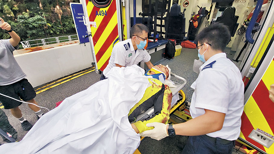 消息表示,昨日下午約1時40分,有工人在地面操控吊臂車將一束共20條,每條約10米長,共重約1.5噸的鋼筋吊運落地底位置,地底處則有4名工人接應「睇位」。在吊運期間,綑綁鋼筋的鋼纜突然斷開,導致鋼筋鬆脫墜下。地底4名工人大驚躲避,其中兩人頓被壓中受困,另兩人則被擦傷,地面工友見狀立即報警求助。