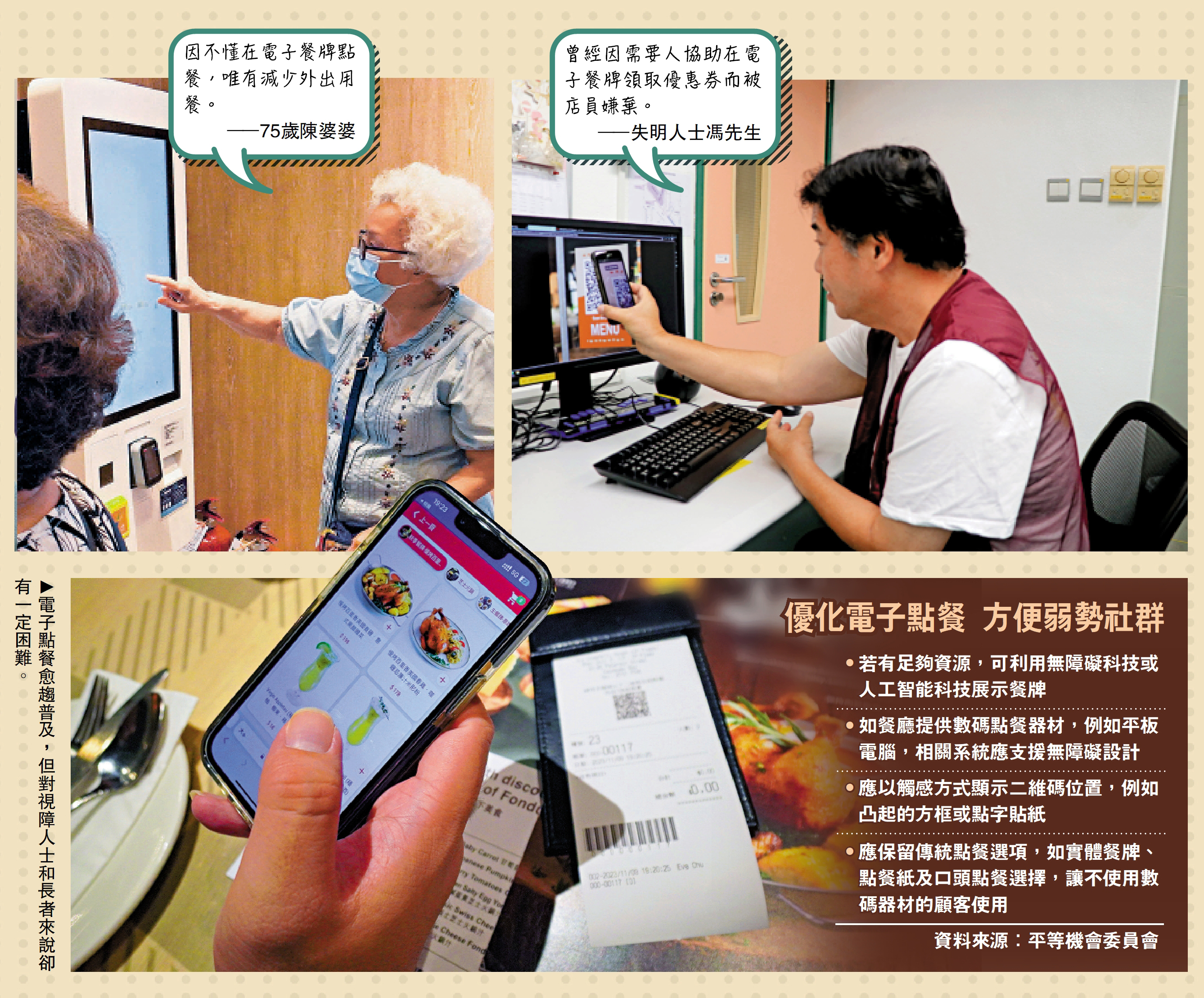 (大公報記者 伍軒沛 林少權)電子點餐在餐飲業愈趨普及,但對視障人士和長者來說卻是個難題!
