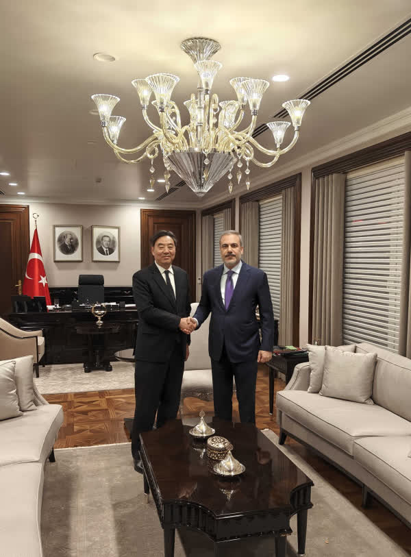 費丹表示,當前巴以衝突持續升級,土方呼籲立即停火止戰並向加沙地帶提供人道主義援助,認為只有「兩國方案」才能從根源上解決巴勒斯坦問題。土方重視中方作用,願同中方保持密切溝通協調,共同推動衝突早日結束,實現地區持久和平。