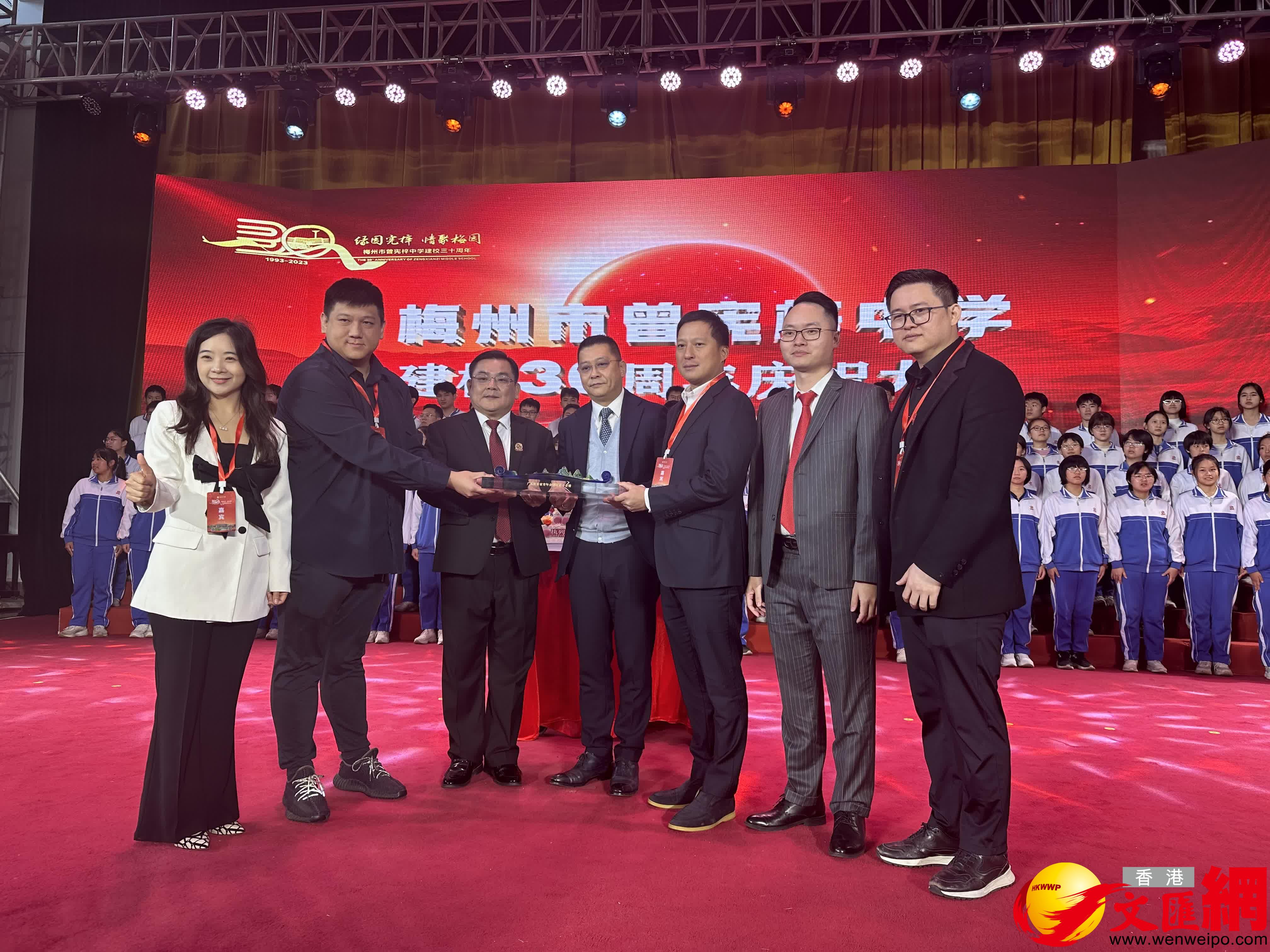 曾智明憶述說,30年前就跟着父親到梅州,看着曾憲梓中學一點點建設起來。30年春風化雨,不少校友都成為行業的表表者,開始回饋社會,參與學校的建設發展,令父親熱心教育的精神薪火相傳。他續說,此番也特意把孩子們帶到現場,就是希望他們繼承爺爺愛國愛港的思想,未來也能繼續做對祖國建設發展有貢獻的人。