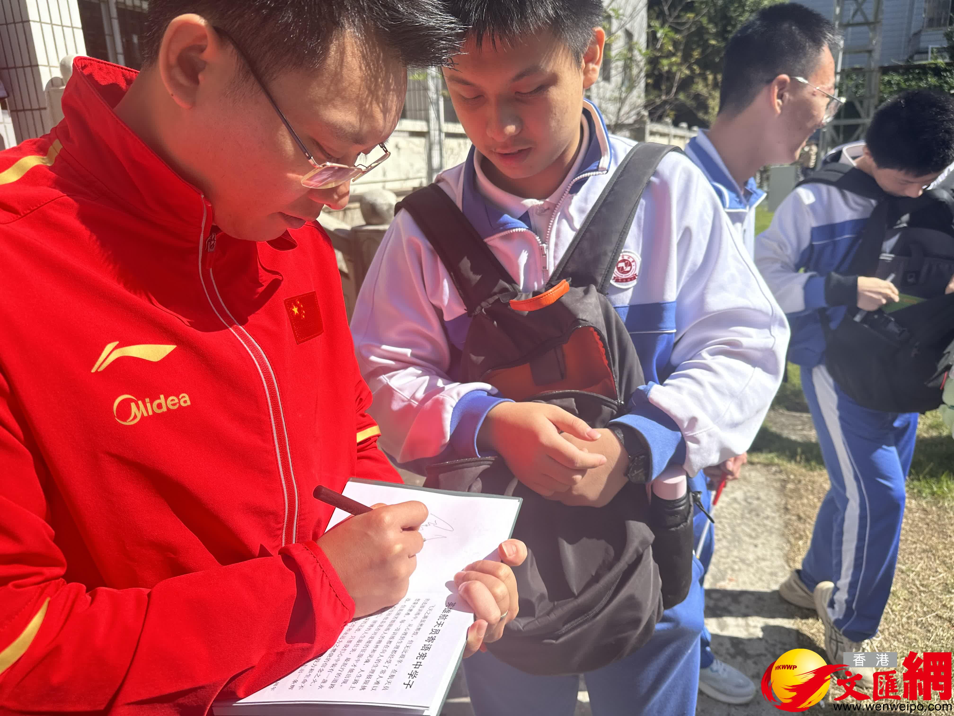 從20世紀70年代開始,曾憲梓除積極支持國家教育外,還特別注重體育和航天等事業,其名下還設有體育和載人航天基金。過去不少航天員和奧運冠軍們也多次到訪曾憲梓中學, 例如,航天英雄楊利偉、劉洋、劉伯明,奧運冠軍冼東妹、羅玉通、楊伊琳、王鑫、楊維等都和學生們進行近距離的「熱血追夢」的故事分享。此番,航天航空專家、原首批航天員兼航天員教練、一級航天員、一級飛行員吳傑、奧運跳水冠軍羅玉通、張雁全一併出現在校園,再次和朝氣蓬勃的學子們分享「強國有我」熱血奮鬥故事。