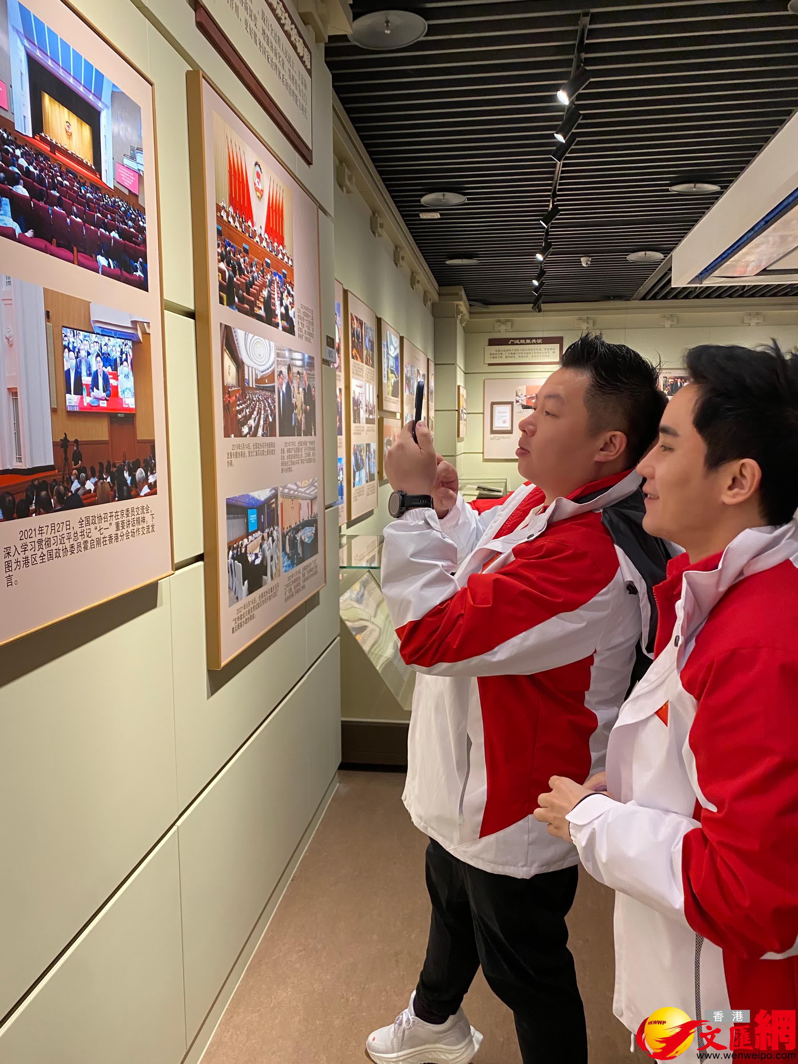 在中國政協文史館,團員們參觀了「人民政協光輝歷程展」。展覽通過協商建國、同舟共濟、歷史轉折、世紀跨越、發展新篇、新時代新使命六個主題,生動展現了人民政協自1949年建立以來的光輝歷程和重要成就。在解說員帶領下,港澳青年們全方位、多角度回顧了人民政協的歷史淵源、社會作用及所作貢獻,了解了國旗、國徽的設計過程及蘊含其中的豐富內涵,觀看了政協委員們捐贈的著作、藝術創作和有關文物。在發展壯大愛國統一戰線展區,大家紛紛駐足,通過珍貴照片和解說,了解香港愛國人士曾為國家作出的貢獻。