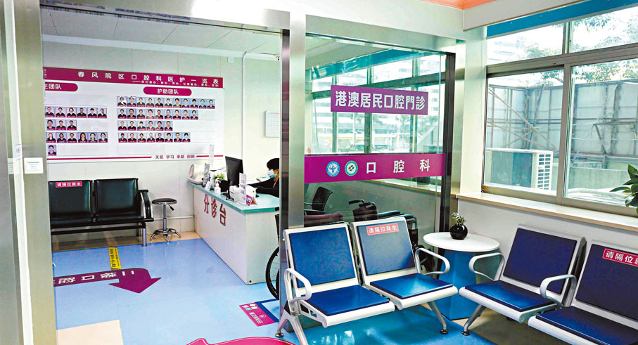 香港文匯報訊(記者 郭若溪 深圳報道)深圳市羅湖醫院集團口腔中心春風院區靠近羅湖口岸和文錦渡口岸,從文錦渡口岸步行十幾分鐘即可抵達,方便不少香港患者就醫。作為公立三甲醫院,春風院區口腔科早在今年一月就開始建立綠色通道陸續接診港澳籍患者,為了提供更加便利和專業的診療服務,羅湖醫院集團羅湖區人民醫院近期專門推出「港澳居民口腔門診」,第一批「港澳居民口腔門診」設在羅湖區人民醫院春風院區二樓口腔科,共四間診室,由資深的口腔醫生日常坐診。 今年十月試運營以來,日均接待港澳居民診療量達15-20人次。