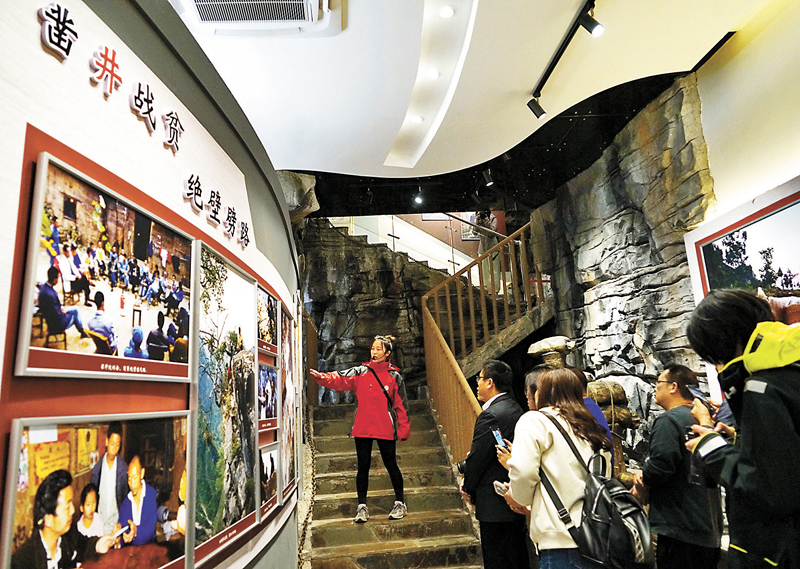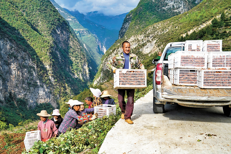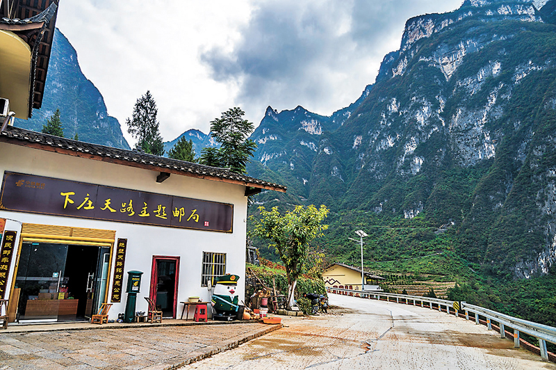 地處秦巴山區腹地的下莊村也被稱為「天坑村」,村莊似桶形,四周皆絕壁,從海拔高達千米的坑沿向下望,散落於坑底的農田僅巴掌大。層巒疊嶂的高山,將下莊人牢牢困在「井底」,人們靠一條羊腸小道與外界聯繫。從1997年開始,在村支書毛相林帶領下,下莊村全體村民發揚不甘落後、不畏艱險、不等不靠、不怕犧牲的「下莊精神」,以犧牲6條生命的代價,歷時7年,在絕壁上修通一條8公里長「天路」。經過15年探索,下莊村培育出 「三色」經濟——「藍色-勞務輸出、綠色-西瓜、橙色-柑橘」,發展鄉村旅遊,將綠水青山變成了金山銀山,蹚出了一條致富路。今年5月,下莊小環線全線建成,通村通暢、通組通暢率達100%。這條懸崖掛壁路不僅改善了下莊村出行條件,也成為村民的致富路。