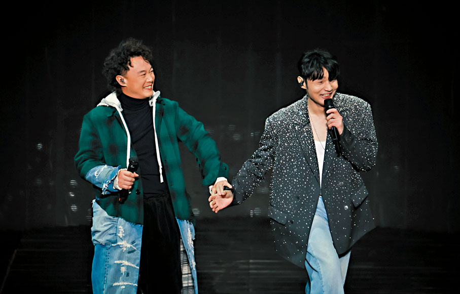 香港文匯報訊 陳奕迅(Eason )重磅現身前晚(25日)李榮浩《縱橫四海》演唱會杭州站擔任嘉賓,事前已有人吹風 Eason 會亮相,樂迷都十分期待。李榮浩唱《模特》唱到一半的時候,陳奕迅驚喜現身,實現這次「夢幻聯動」,全場滿座 5 萬人驚呼響徹雲霄。二人更合唱了由李榮浩作詞、收錄在陳奕迅最新專輯《CHIN UP!》的《社交恐懼癌》。兩位超難得的演繹,發出步調相同的吶喊,令樂迷非常雀躍。陳奕迅曾在接受採訪時談及李榮浩,表示在李榮浩發行第一張專輯《模特》的時候就想認識他了,如今兩人合唱了相識之曲,展現惺惺相惜的好友情誼。昨晚 Eason 更說道,「他(李榮浩)是我很欣賞的音樂人,他的音樂一直治癒着我。」而李榮浩昨日(26日)更發文表示,前晚杭州站5萬多人的吶喊,震耳欲聾,我卻一直被溫暖着,最後為了這一次給大家製造一個驚喜,邀請了老友陳奕迅在忙碌的巡演中還專程飛過來,真的真的感動壞了,還一起唱了兩首歌,開心。此次 Eason 與李榮浩的「夢幻聯動」讓歌迷們直呼滿滿感動與幸福!