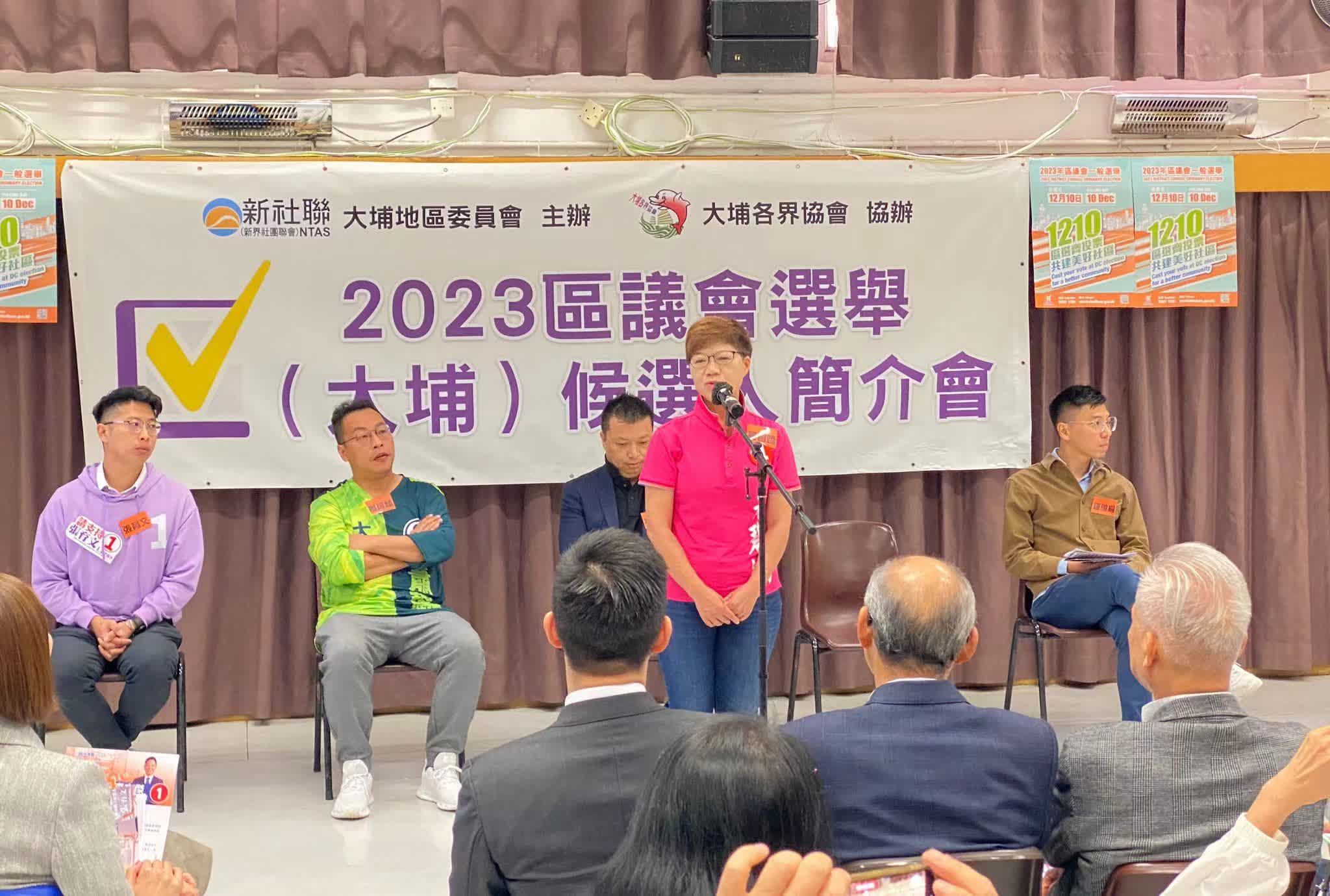 簡介會由新界社團聯會大埔地區委員會主辦。新一屆大埔區議會設有8個地區委員會界別議席,將在12月10日區議會一般選舉當日,由北區「三會」的合資格選民從12位候選人中投票選出。此外,大埔南、大埔北亦各設有2個地方選區議席,將同日由當區合資格選民投票選出。