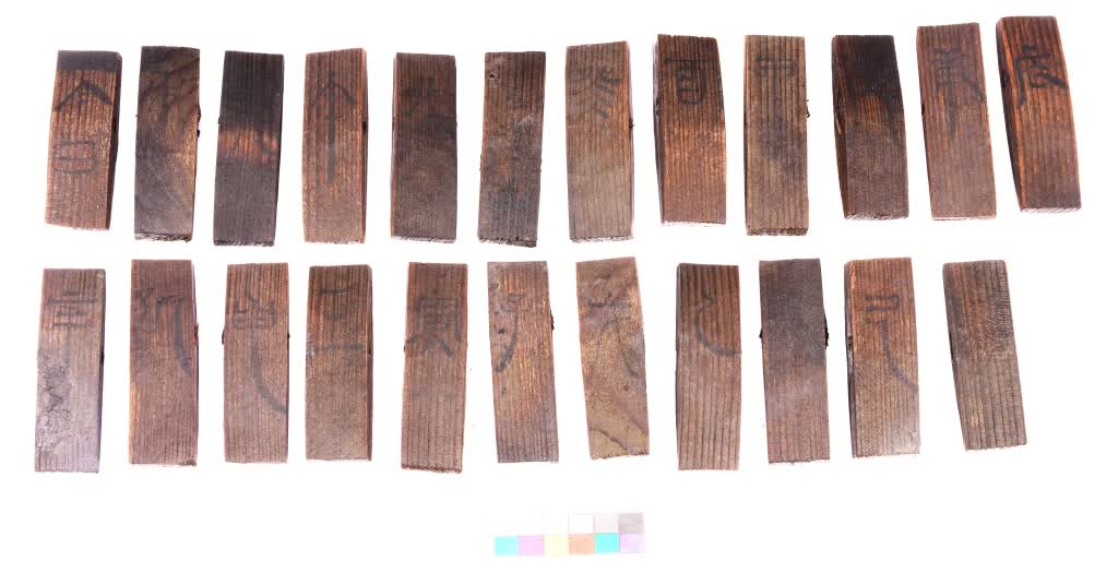 值得一提的是,此次出土的文物「干支木牘」是本次考古發掘中的重大發現,也是首次在全國發現此類文物。「干支木牘」共23枚,除一枚墨書「今日」外,其餘22枚皆單字墨書十天干及十二地支。