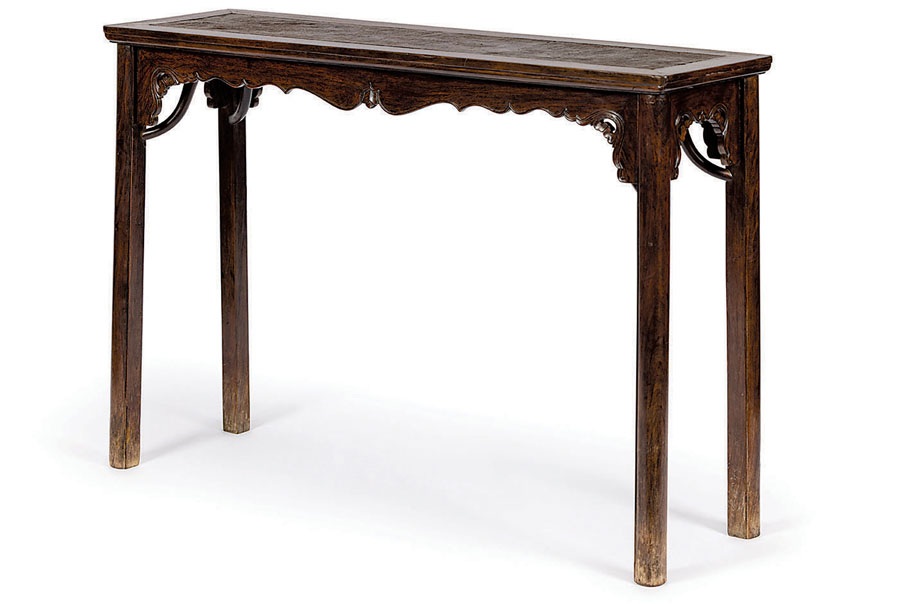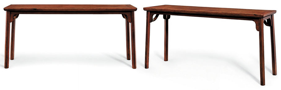 2021年4月,香港蘇富比拍出一對「明末至清初黃花梨六方材霸王棖條桌」,連佣成交價為2437.5萬港元。此對黃花梨霸王棖條桌造型簡約爽朗、線條明快,上斂下舒,整體以直線為主題,極富剛陽之感,再配以霸氣十足的方材霸王棖,充分體現了古人對直線與曲線、方與圓、橫與直之間微妙平衡的掌控力,設計美觀大方,古樸的韻味中蘊含着典雅之氣、自然之美、靜謐之感。◆作者:香港中華文化藝術推廣基金主席 李秀恒