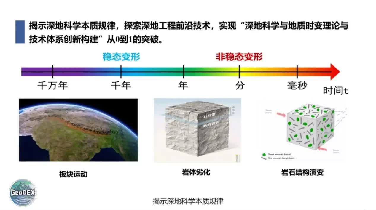 GeoDEX項目研究將為跨越地質年代與人類時間尺度的不同空間岩土體與地質環境的演變過程研究,提供充分的地質時變信息及證據,揭示深地科學本質規律,探索深地工程前沿技術,實現「深地科學與地質時變理論與技術體系創新構建」從0到1的突破。