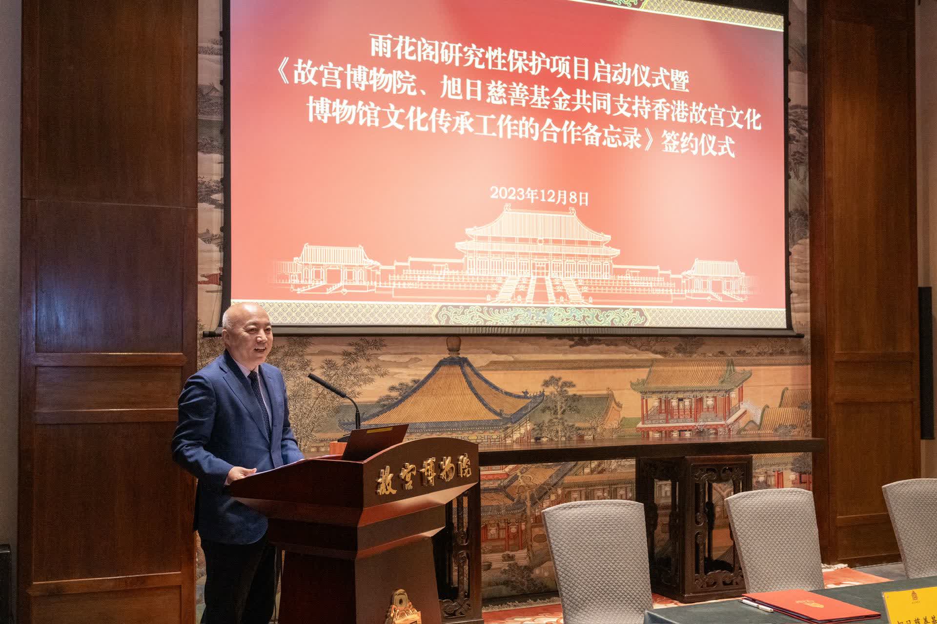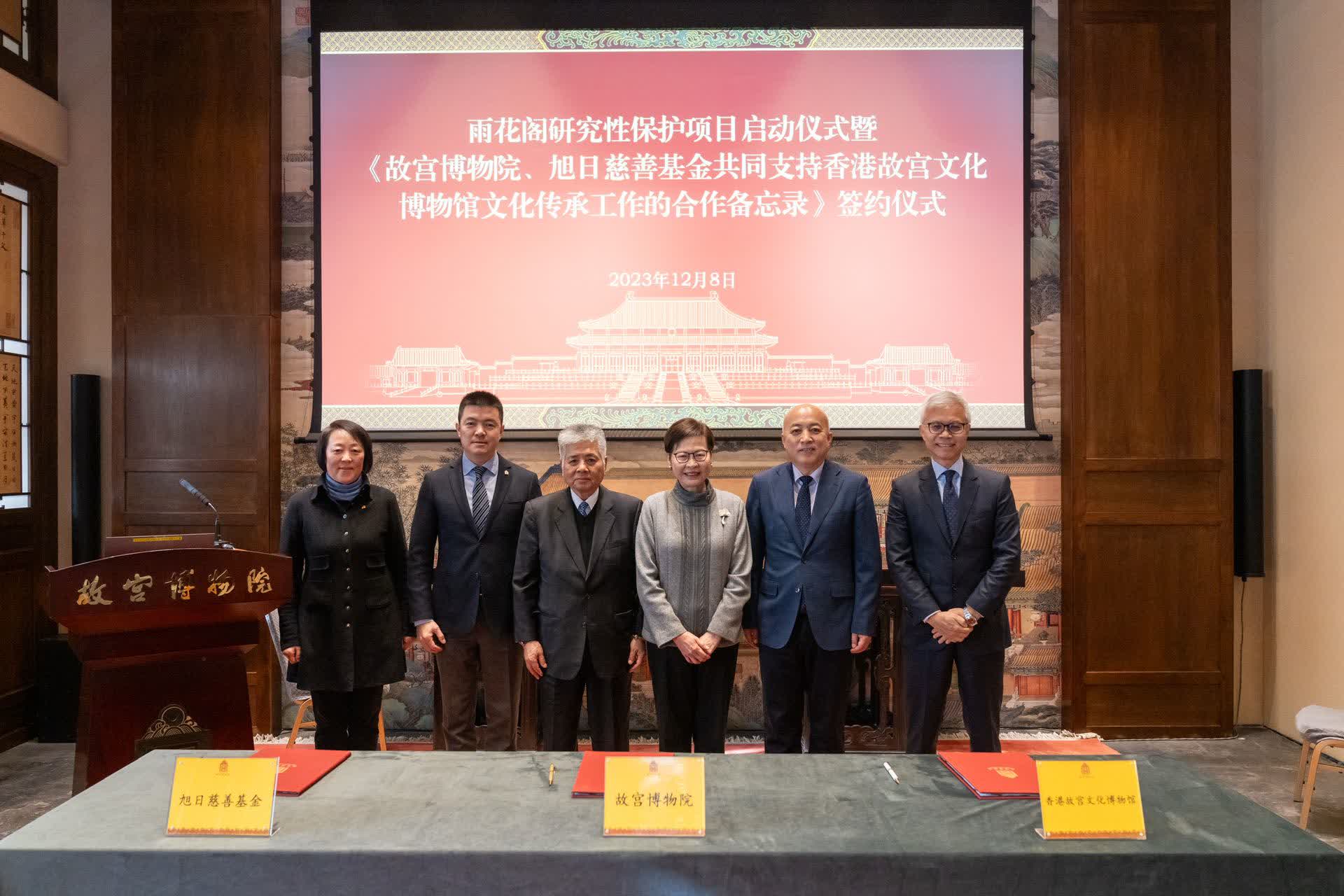 故宮博物院院長王旭東表示,故宮博物院承擔着聯合香港故宮文化博物館,共同傳承和弘揚中華優秀傳統文化的歷史使命。該項備忘錄的簽署,標誌着故宮博物院與香港故宮文化博物館的合作邁入新的階段。他向對雨花閣研究性保護項目、香港故宮文化博物館文化傳承工作傾注支持的旭日慈善基金,向促成包括此次活動在內的多個香港企業對故宮資助項目的林鄭月娥,以及關心故宮博物院事業發展的社會各界人士表示感謝。