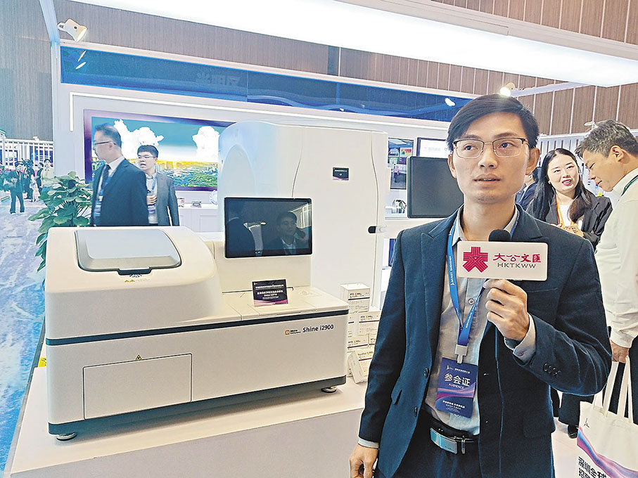 華潤集團作為在港發展起來的央企,同樣看好深圳高端製造和研發創新的前景,華潤集團旗下醫療器械子公司潤銘生物市場副總監韓偉接受記者採訪時表示,公司今年10月剛剛在光明區成立,主營業務是IVD行業體外診斷的產品,此次參展的一些產品是一款全自動化學發光免疫分析儀,用於檢測人體的抗原抗體的標誌物,新設備體積僅為傳統設備的三分之一,速度較同等體積設備提高了一倍。而醫療設備行業在中國的總市場規模約有2,000億元,因此,十分看好市場機遇。