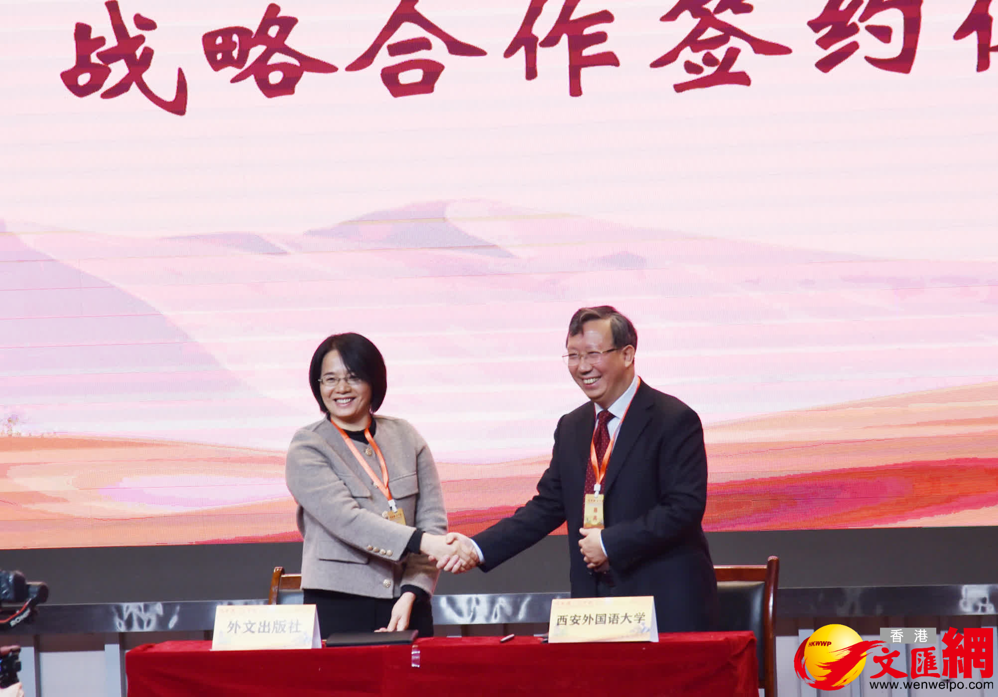 據悉,「悅西安閱中國」講中國故事演講比賽自2021年創辦以來,吸引了眾多西安駐市高校中外學生參與,成為促進中外民心相通與文明互鑒的橋樑。在當日決賽現場,西安外國語大學還與外文出版社簽訂戰略合作協議。根據協議,雙方將基於各自的資源優勢和學科優勢,共同推動中國哲學社會科學優秀成果海外傳播,增進世界各國對當代中國的認知與理解,不斷擴大和提升我國國際影響力和國際話語權。