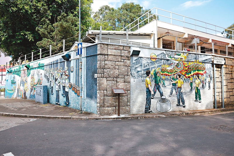 順平街位於舊消防局附近,除街道名稱寓意順利平安外,還有兩幅繪有精緻壁畫的牆身,牆上描繪沙頭角標誌性的傳統酬神慶典文化活動,而當地居民至今仍按傳統每年舉行天后誕,每十年更舉辦一次大型慶典,其中最具特色的是鶴佬婦女的「陸上龍舟」舞,有關慶典的畫面活靈活現地呈現牆上,遊人可透過壁畫感受到慶典的熱鬧氣氛。